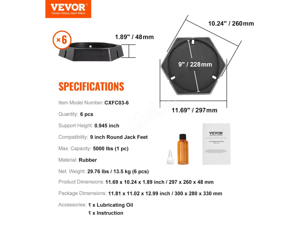 Podložky pod stojiny karavanu 9 inch pryžové, nosnost 5000 lbs, 6 ks