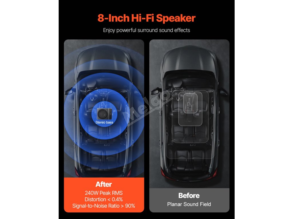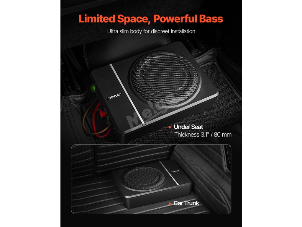 Tento 8" subwoofer do auta pod sedadlo je nevyhnutnou výbavou pre nadšencov automobilového audia, pretože poskytuje silné basy a čistý zvuk a zároveň šetrí miesto vďaka svojmu štíhlemu 3,1" profilu. Je vybavený vstupom pre vysokú/nízku úroveň a maximálnym výkonom 240 W, čím výrazne pozdvihne váš zvukový zážitok na ďalšiu úroveň.