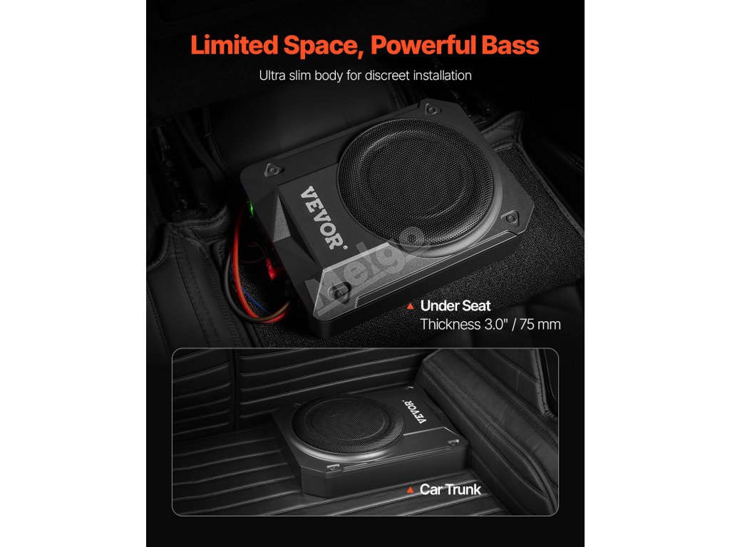 Tento 8" subwoofer pod sedadlo je nezbytnou výbavou pro milovníky automobilového audia, protože poskytuje silné basy a čistý zvuk a zároveň šetří místo díky svému tenkému 3,0" profilu. Je vybaven vysokým/nízkým vstupem a maximálním výkonem 800 W, takže výrazně pozvedne váš zvukový zážitek na vyšší úroveň.