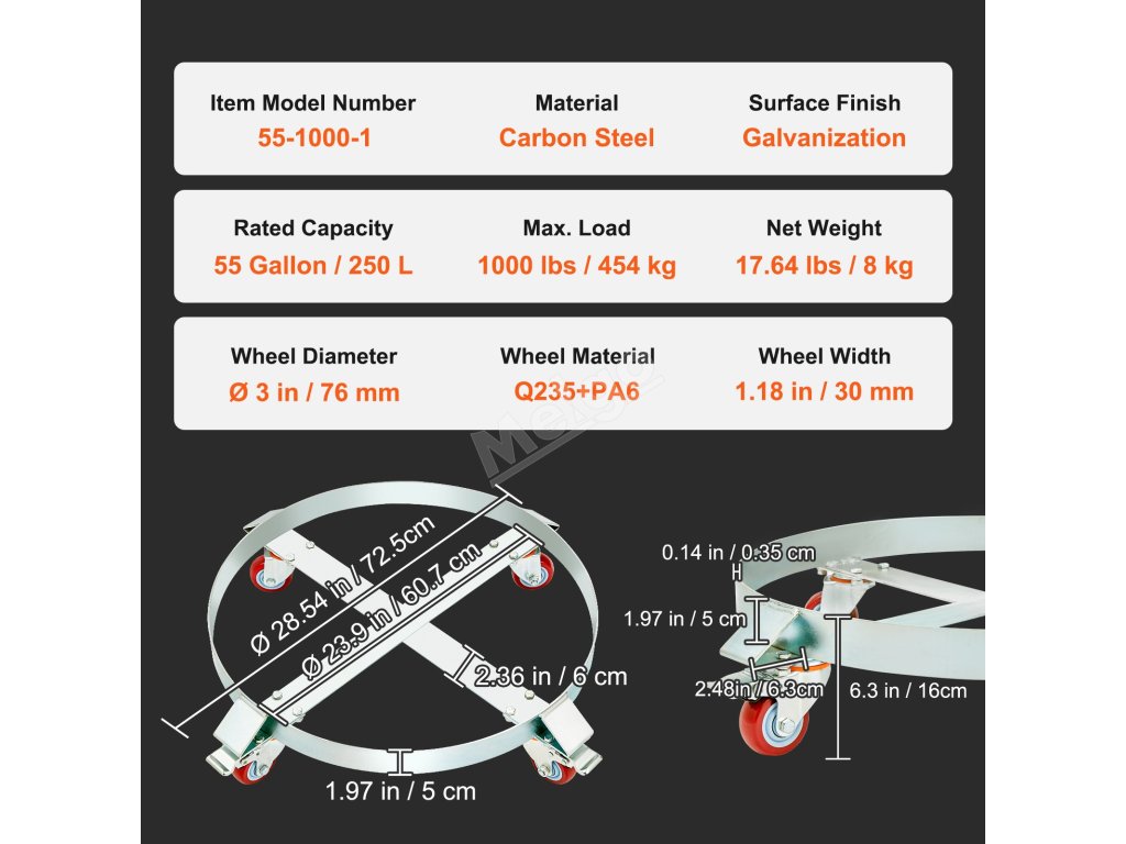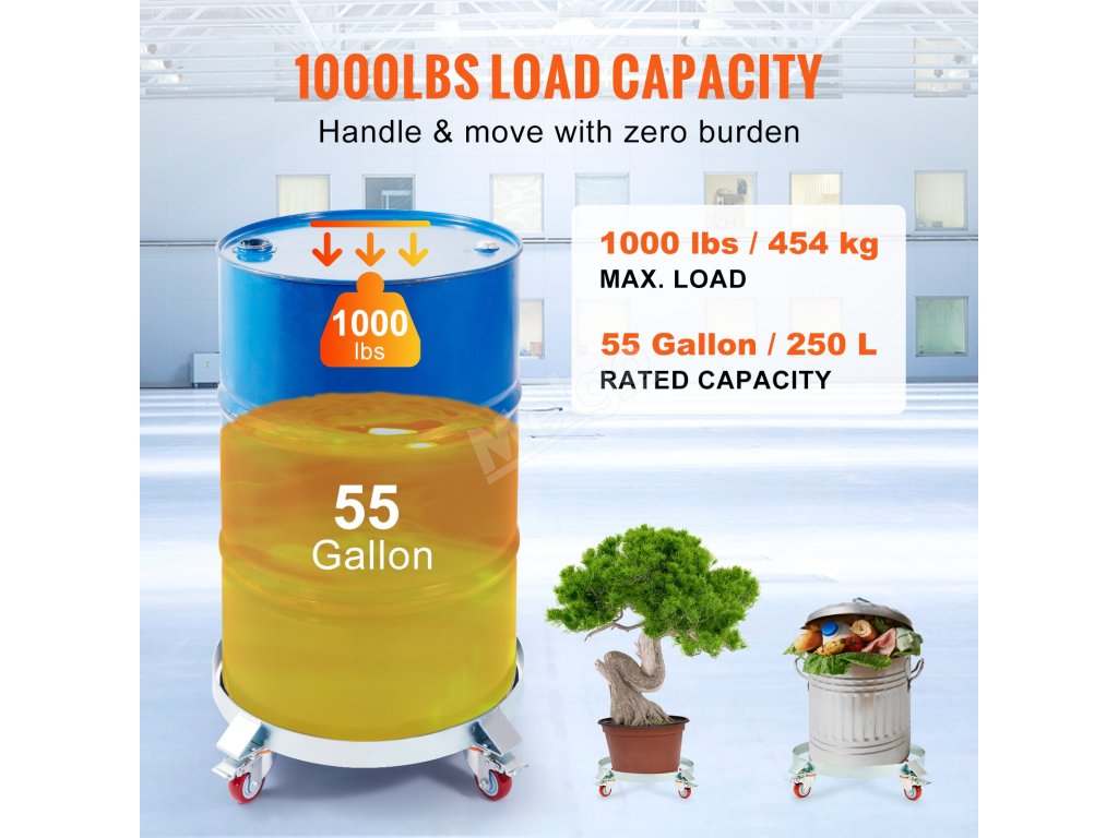 Ocelový vozík na sudy má maximální nosnost 1 000 liber/454 kg a zvládne převážet sudy o objemu až 55 galonů. Sud jednoduše umístěte na vozík na sudy s olejem a snadno jej zatlačte na požadované místo.