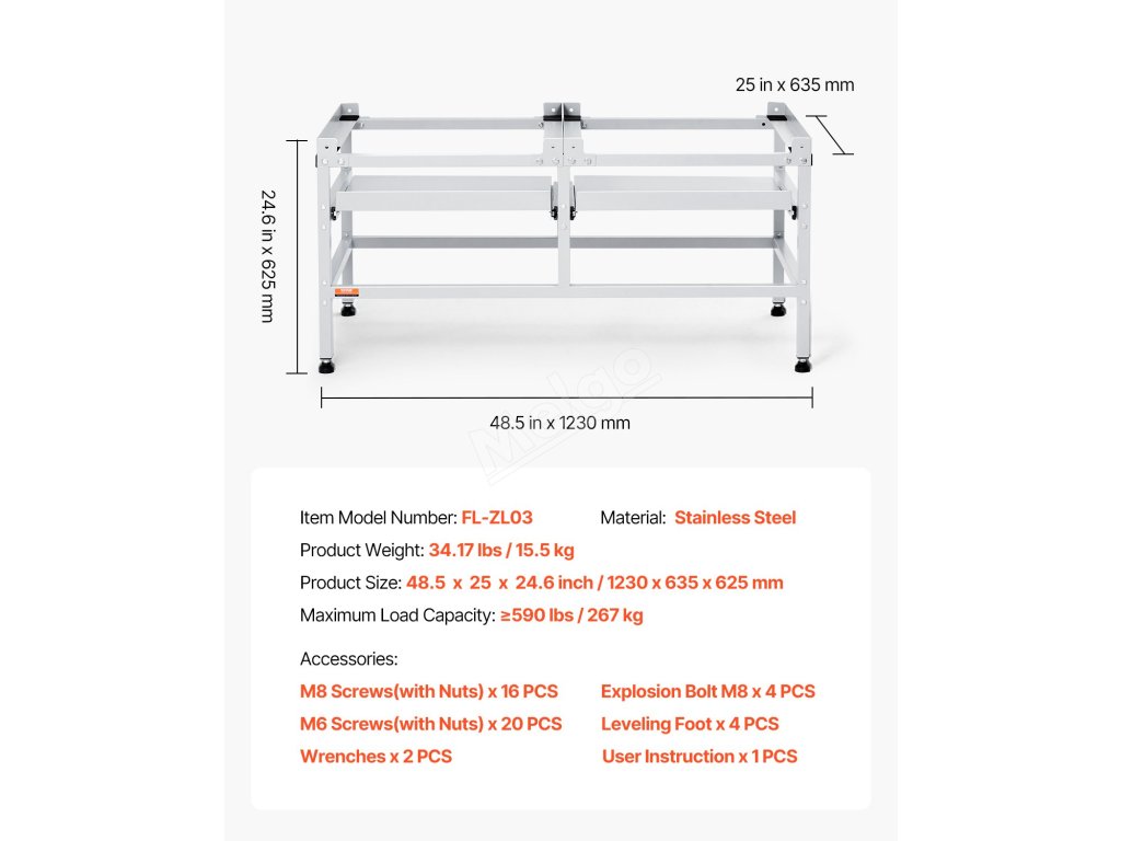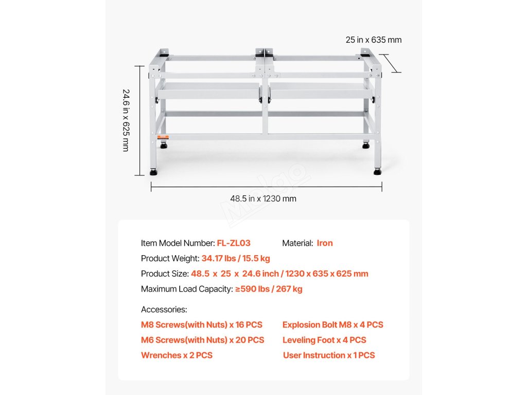 Podstavec pod pračku 48.5×25" 590LBS, dvojité tácky, 4 nohy, ocel