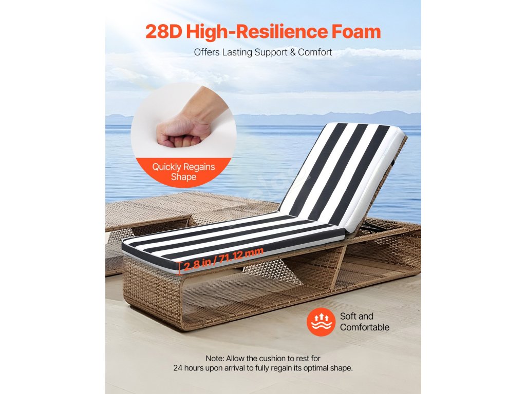 Tento polštář na venkovní nábytek je vyplněn pěnou o vysoké hustotě 28D a zabalen do tkaniny odolné proti vodě a blednutí, takže zůstává pohodlný a odolný za každého počasí. Díky protiskluzovým popruhům bezpečně drží na svém místě, zatímco dvojitě prošité okraje a skrytý zip mu dodávají odolnost i styl.