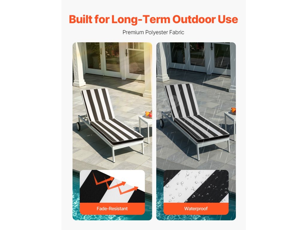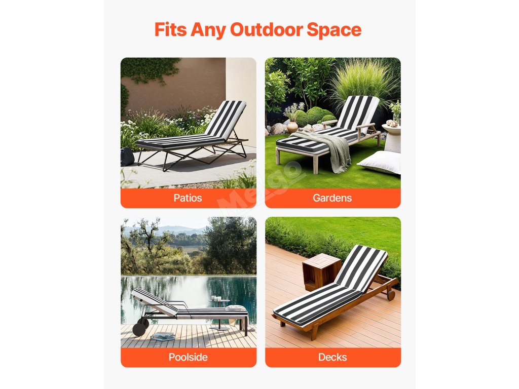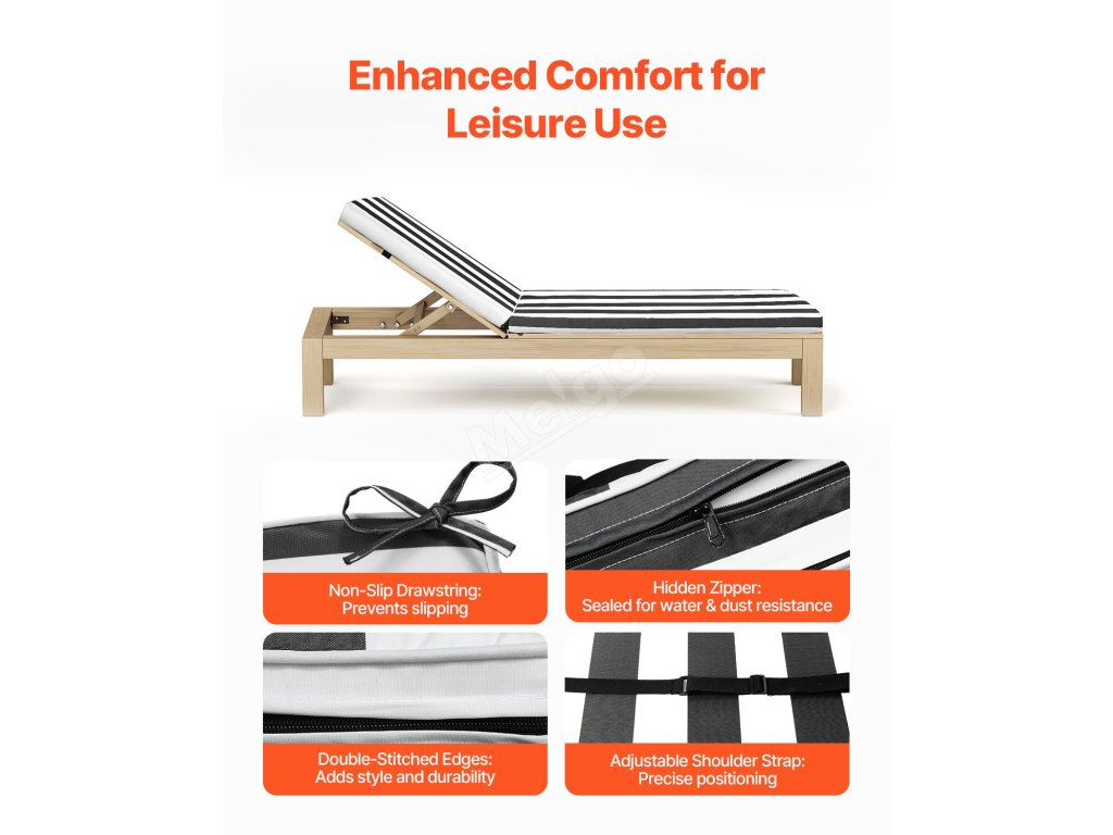 Tento polštářek na venkovní lehátko má univerzální velikost, která je vhodná pro většinu lehátek, a nabízí oporu celého těla a pohodlí na terasách, zahradách. Mezi promyšlené detaily patří nastavitelné ramenní popruhy, protiskluzové úchyty a skrytý zip pro snadné přenášení a bezpečné umístění.