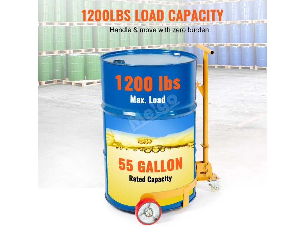 Vozík na sudy VEVOR má maximální nosnost 1 200 kg a zvládne převážet sudy o objemu až 55 galonů. Díky multifunkční rukojeti můžete sud snadno nakládat a vykládat. Univerzální kola s brzdami usnadňují uživateli ovládání směru jízdy. Vyberte si VEVOR, aby pro vás byla manipulace se sudy hračkou!