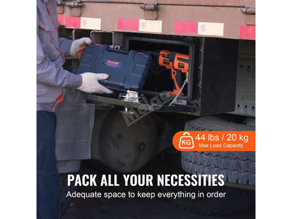 Jsou vaše věci uspořádané a snadno dostupné? Skříňka na nářadí VEVOR pod korbu rozšíří úložný prostor vašeho nákladního automobilu, přívěsu nebo jiného velkého vozidla. Do této skříně pro nákladní automobily můžete uložit všechny potřebné věci, od nářadí pro údržbu až po kempinkové vybavení, a mít tak vše přehledně uspořádané.