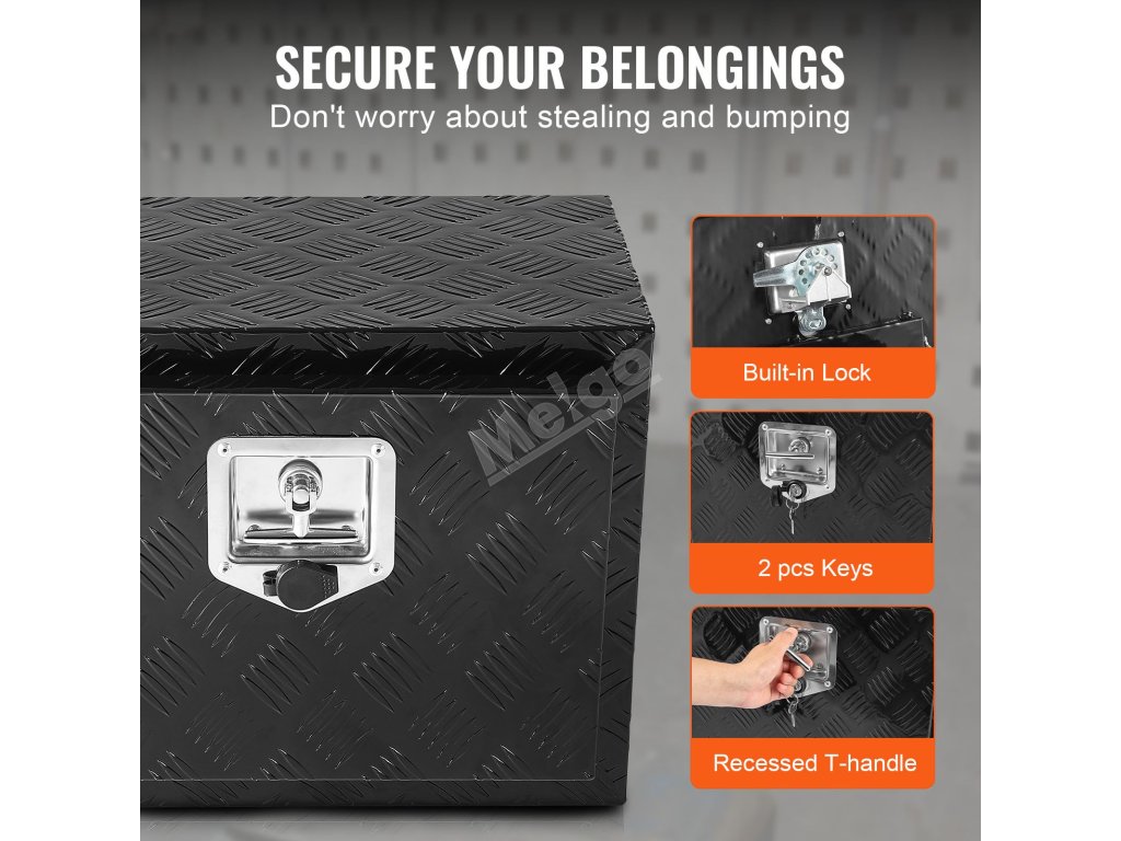 Box na nářadí je vybaven zámkem, pevnou západkou z nerezové oceli a dodává se se 2 exkluzivními klíči pro zvýšení bezpečnosti proti krádeži.