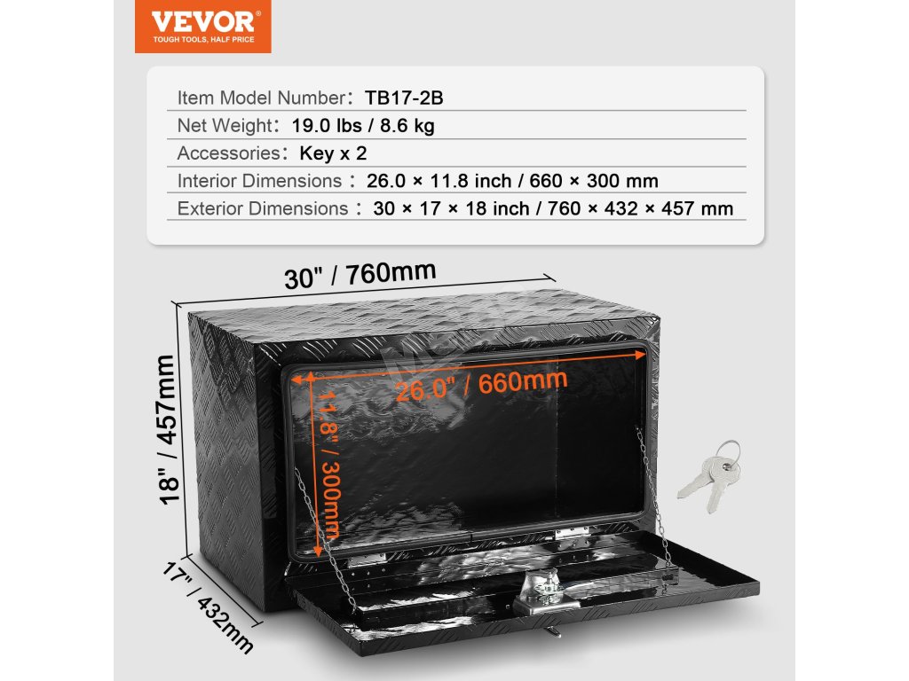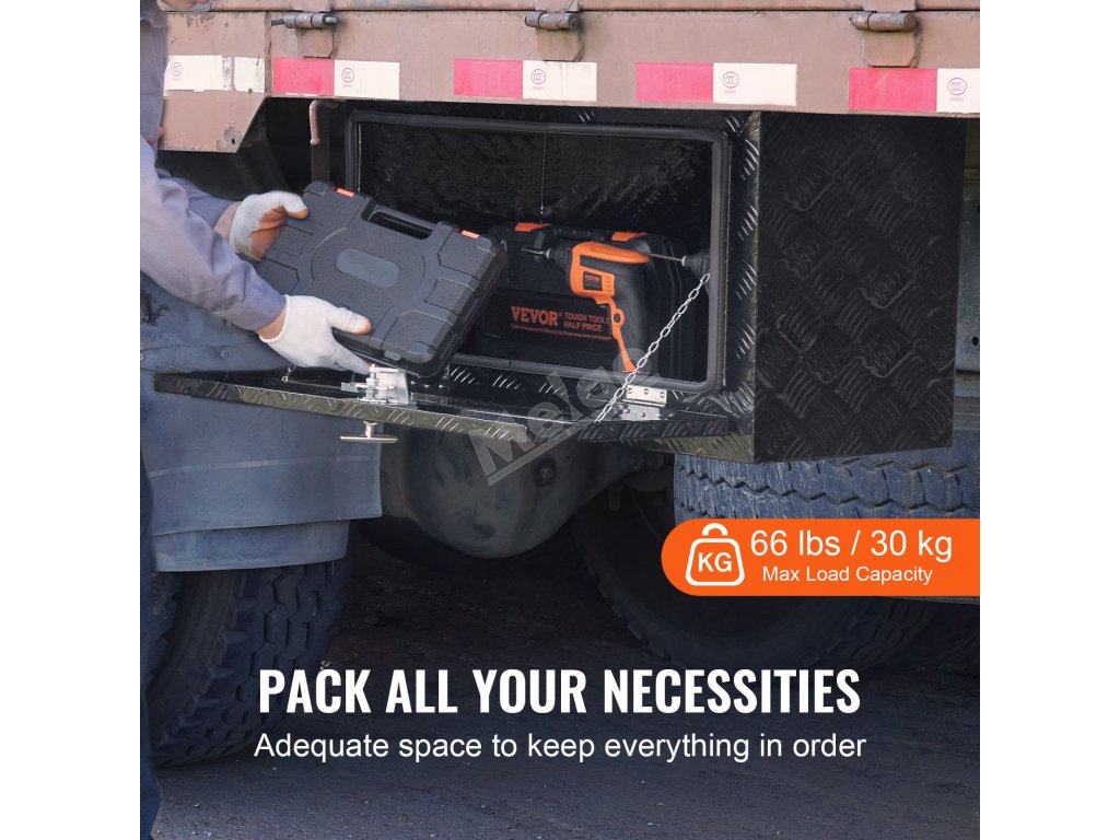 Jsou vaše věci uspořádané a snadno dostupné? Skříňka na nářadí VEVOR pod korbu rozšíří úložný prostor vašeho nákladního automobilu, přívěsu nebo jiného velkého vozidla. Do této skříně pro nákladní automobily můžete uložit všechny potřebné věci, od nářadí pro údržbu až po kempinkové vybavení, a mít tak vše přehledně uspořádané.