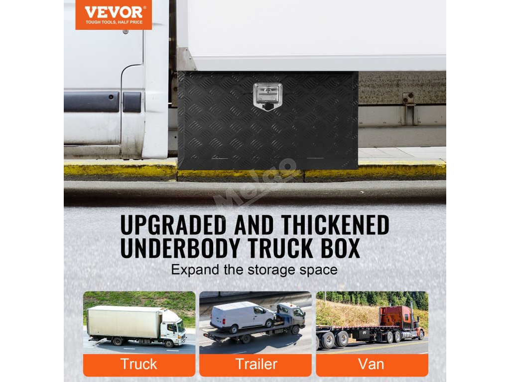 Jsou vaše věci uspořádané a snadno dostupné? Skříňka na nářadí VEVOR pod korbu rozšíří úložný prostor vašeho nákladního automobilu, přívěsu nebo jiného velkého vozidla. Do tohoto boxu pro nákladní automobily můžete uložit všechny potřebné věci, od nářadí na údržbu až po kempinkové vybavení, a mít tak vše přehledně uspořádané.