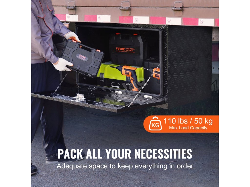 Jsou vaše věci uspořádané a snadno dostupné? Skříňka na nářadí VEVOR pod korbu rozšíří úložný prostor vašeho nákladního automobilu, přívěsu nebo jiného velkého vozidla. Do tohoto boxu pro nákladní automobily můžete uložit všechny potřebné věci, od nářadí na údržbu až po kempinkové vybavení, a mít tak vše přehledně uspořádané.