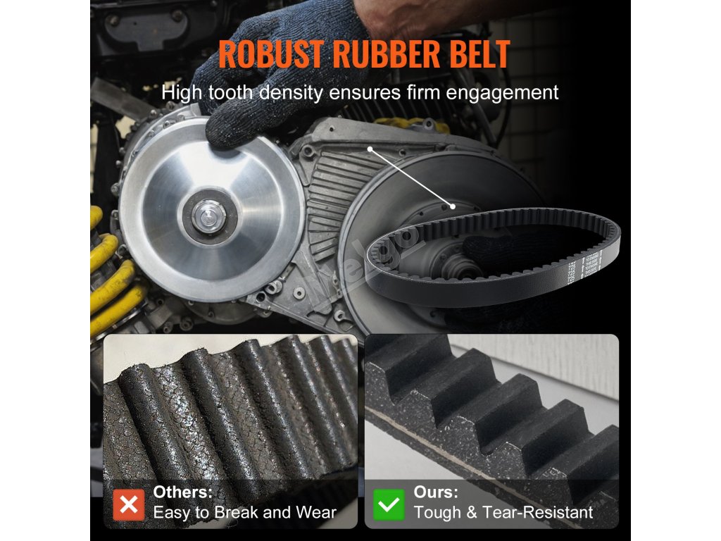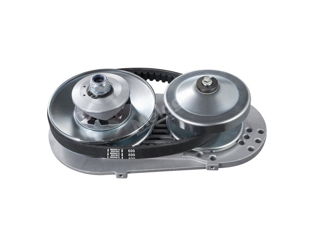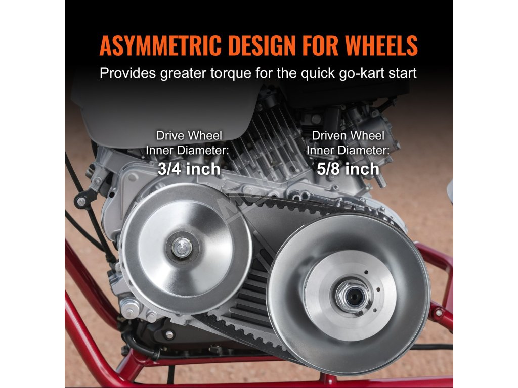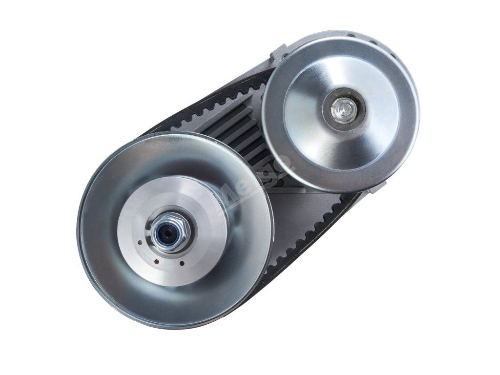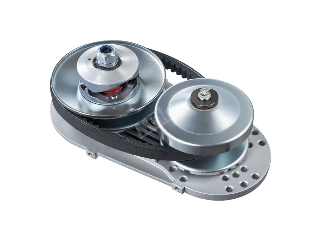 Modernizovaná asymetrická konstrukce s hnacím kolem o vnitřním průměru 3 palce a hnaným kolem o vnitřním průměru 5/8 palce. Tato konstrukce snižuje spotřebu paliva a zároveň zajišťuje rychlou odezvu motoru pro zvýšení bezpečnosti a výkonu.