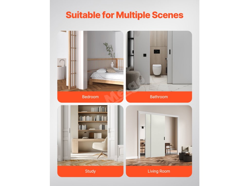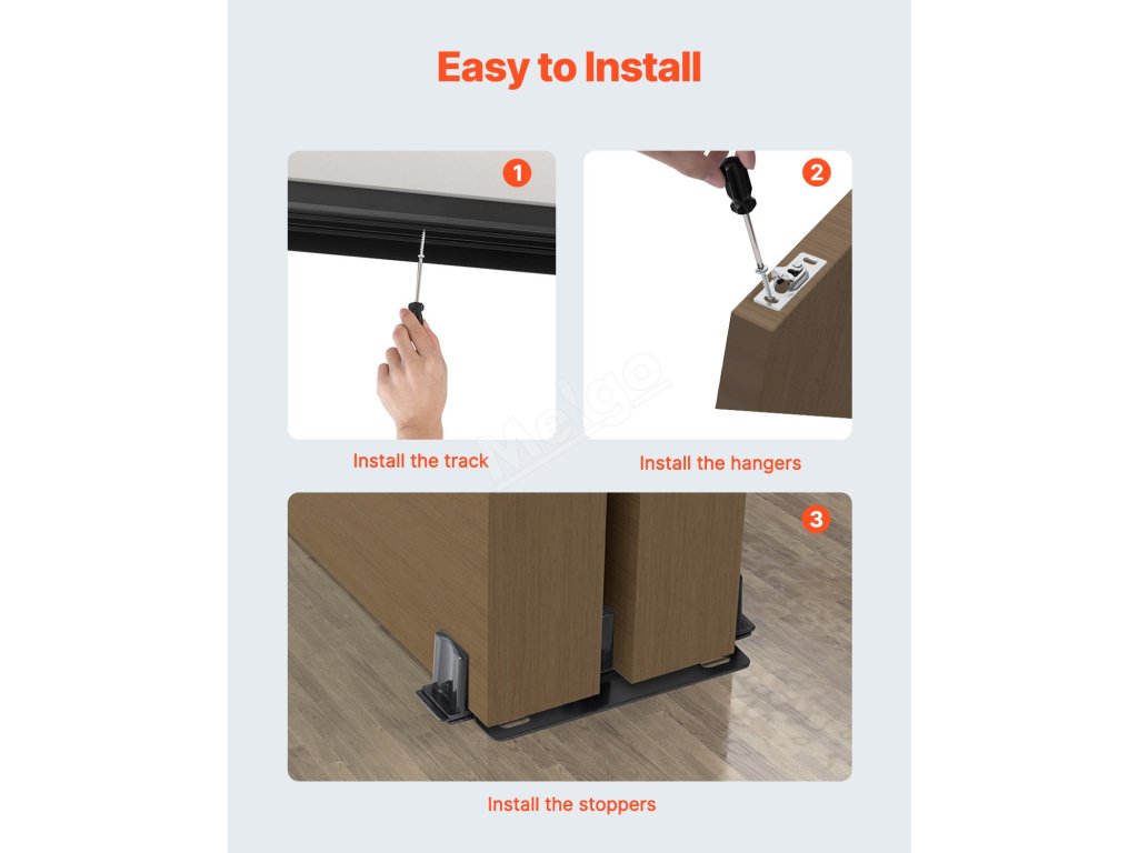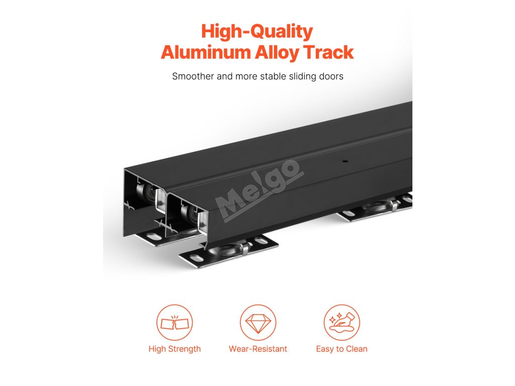 Tato sada kování pro obchozí dveře, která se skládá z vysoce kvalitních hliníkových kolejnic a tříkolového systému, zajišťuje hladké a stabilní posouvání. Je vhodná do různých interiérů, jako jsou obývací pokoje, kuchyně, ložnice a koupelny.