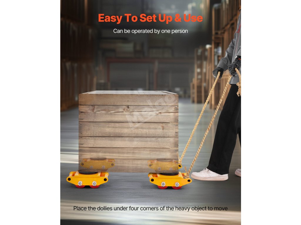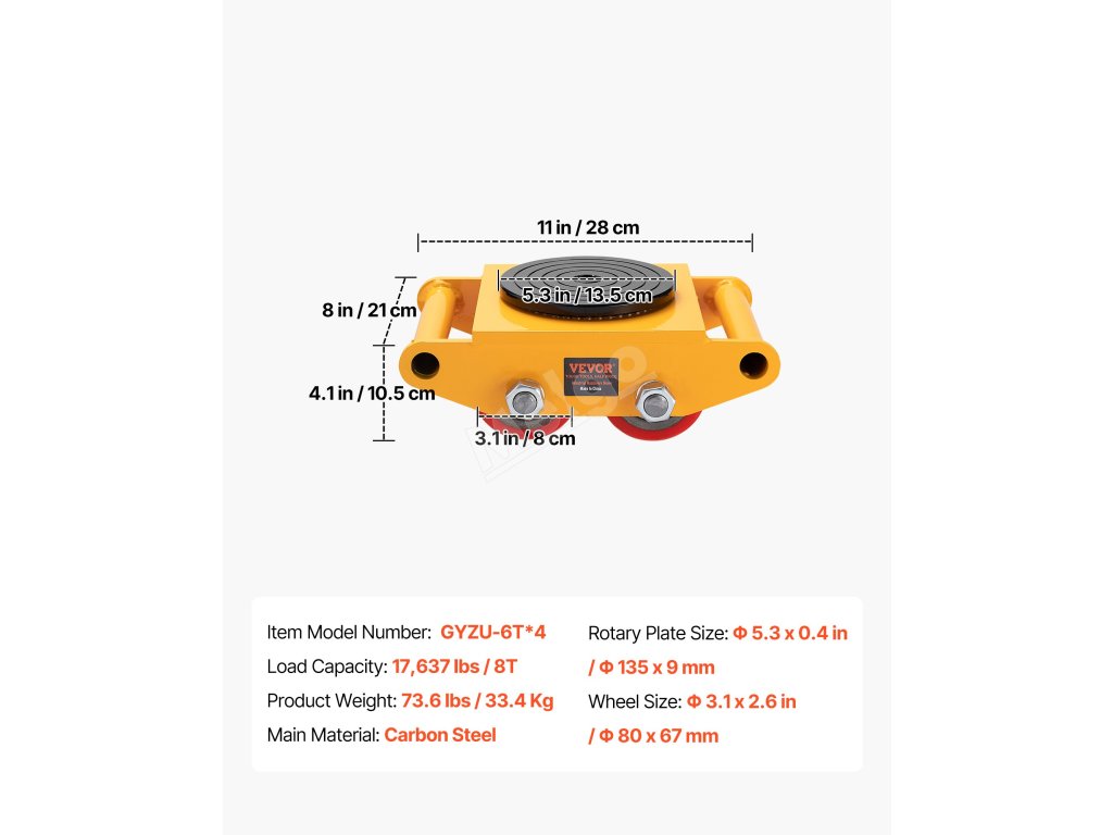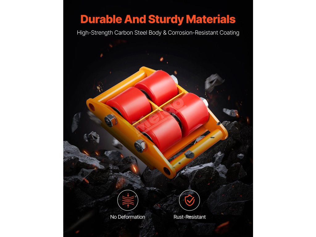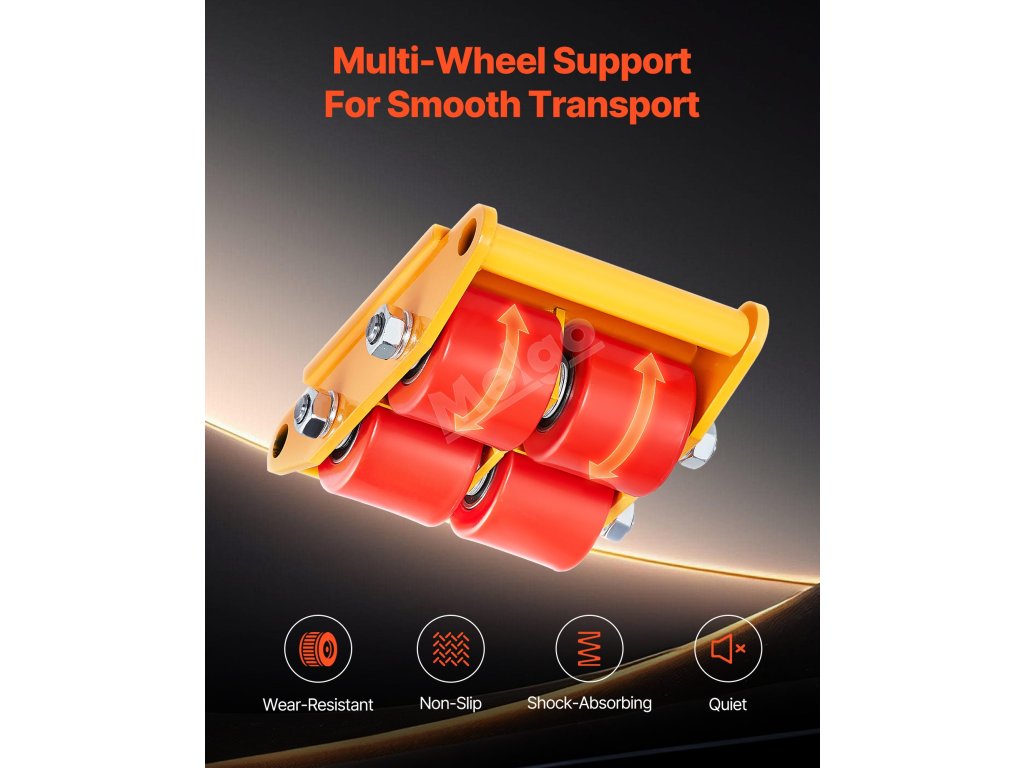 Odlehčete svůj náklad a zjednodušte své přepravní potřeby s vozíky na strojní brusle VEVOR 4ks.Celková nosnost 17637 lbs/8T, robustní ocelová konstrukce a 4 směrová PU kola mohou snadno přepravovat těžké náklady s výjimečnou kontrolou a stabilitou v jakémkoli terénu.