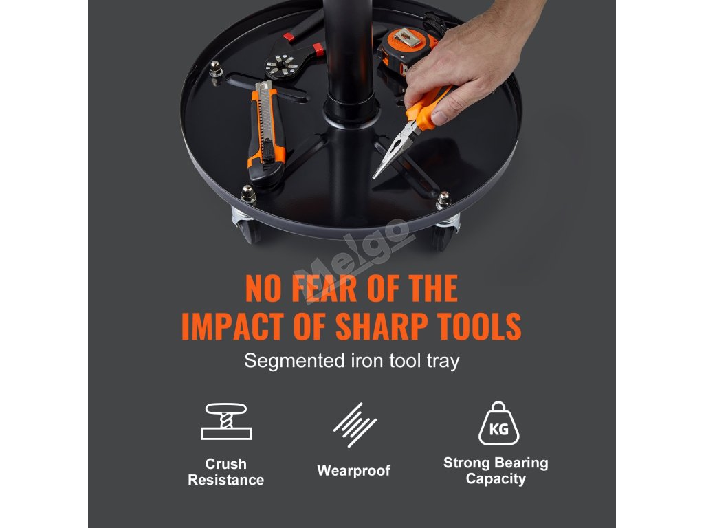 Mechanická stolička VEVOR s pojazdným plazivým sedadlom na náradie je vybavená integrovaným železným zásobníkom na náradie. Tento zásobník je pevný a odolný voči ostrým nárazom nástrojov. Ponúka tiež odolnosť proti stlačeniu a opotrebovaniu. Veľký oceľový zásobník udržiava vaše náradie usporiadané a na dosah. Môžete si do nej uložiť základné predmety, čím sa zefektívni vaša práca. Umiestnenie zásobníka na podnožke maximalizuje pohodlie pri ukladaní základných predmetov. Je ideálny pre tých, ktorí potrebujú rýchly prístup k náradiu. Zásobník dodáva dizajnu stoličky praktickosť. Vďaka tejto integrácii je stolička univerzálnym riešením pracovného priestoru.