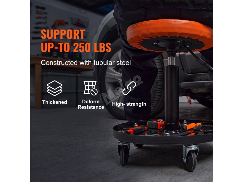 Nastaviteľné pojazdné sedadlo pre mechanikov VEVOR je ideálne na viaceré použitia. Použite ju na opravu alebo čistenie vozidiel. Je tiež skvelé na prácu s nábytkom a iné nízke projekty. Konštrukcia stoličky sa hodí na profesionálne aj osobné použitie. Môžete ju používať v garážach, domácnostiach, a dokonca aj pri cestách. Vďaka nastaviteľnej výške a mobilnej konštrukcii je táto stolička všestranne použiteľná. Nezáleží na tom, či pracujete na zložitých úlohách alebo na všeobecných prácach, táto stolička poskytuje pohodlie a funkčnosť všade, kde ju potrebujete. Táto stolička vás nastaví ako spoľahlivá voľba pre všetky vaše projektové práce.