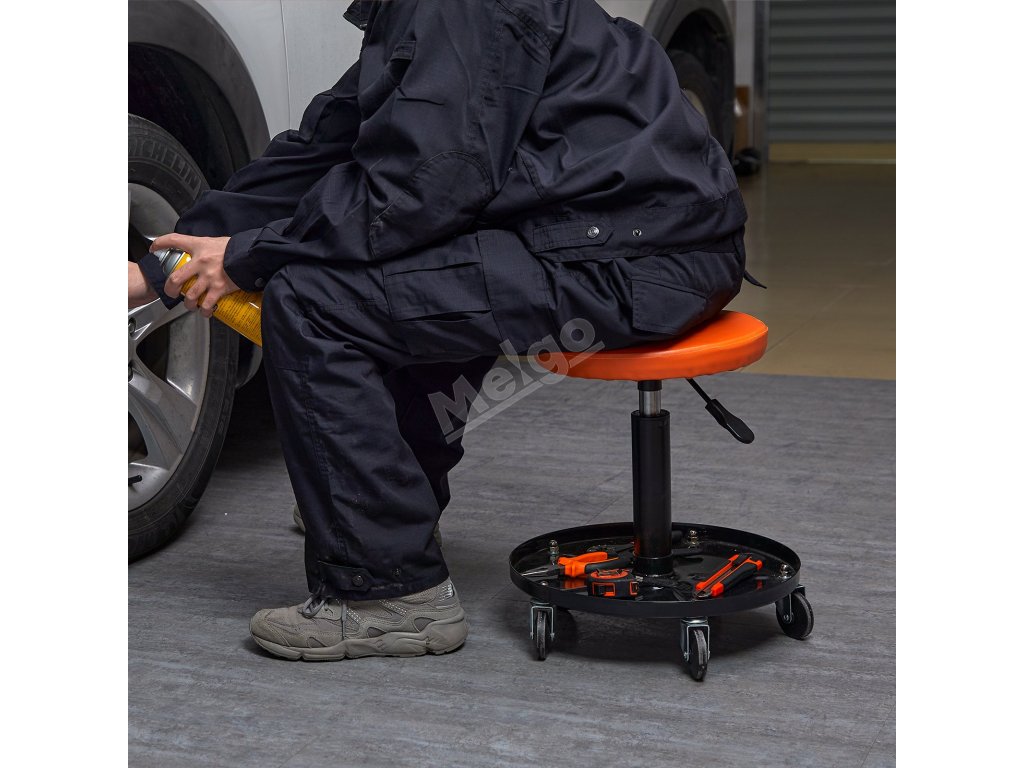 Táto nastaviteľná stolička do dielne sa dá ľahko premiestňovať. Kolieska z PP s guličkovými ložiskami dobre fungujú na zložitých povrchoch. Kompresný mechanizmus v západkách zaisťuje odolnosť. Stoličku môžete bez námahy riadiť v akomkoľvek smere. Táto funkcia je nevyhnutná pre dynamické pracovné prostredie. Konštrukcia je určená pre dynamických pracovníkov. Rýchla zmena polohy vám umožní rýchlo získať kontrolu nad pracovným postupom. Pohyblivosť stoličky je prispôsobiteľná rôznym pracovným prostrediam. Sú ideálne pre rušné garáže a dielne.