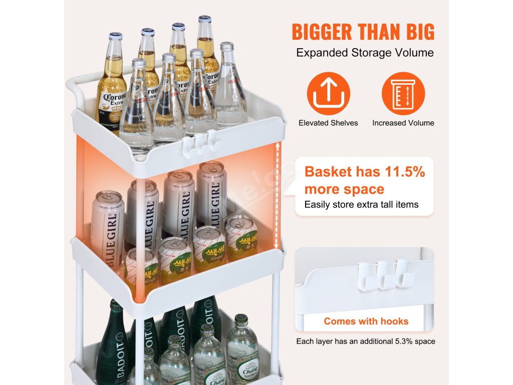 Využijte 11,5% nárůst úložné kapacity ve srovnání s tradičními vozíky. Náš pojízdný užitkový vozík maximalizuje využití prostoru pro více úložného prostoru. Rychle najdete, co potřebujete, a snadno si uspořádáte věci denní potřeby.