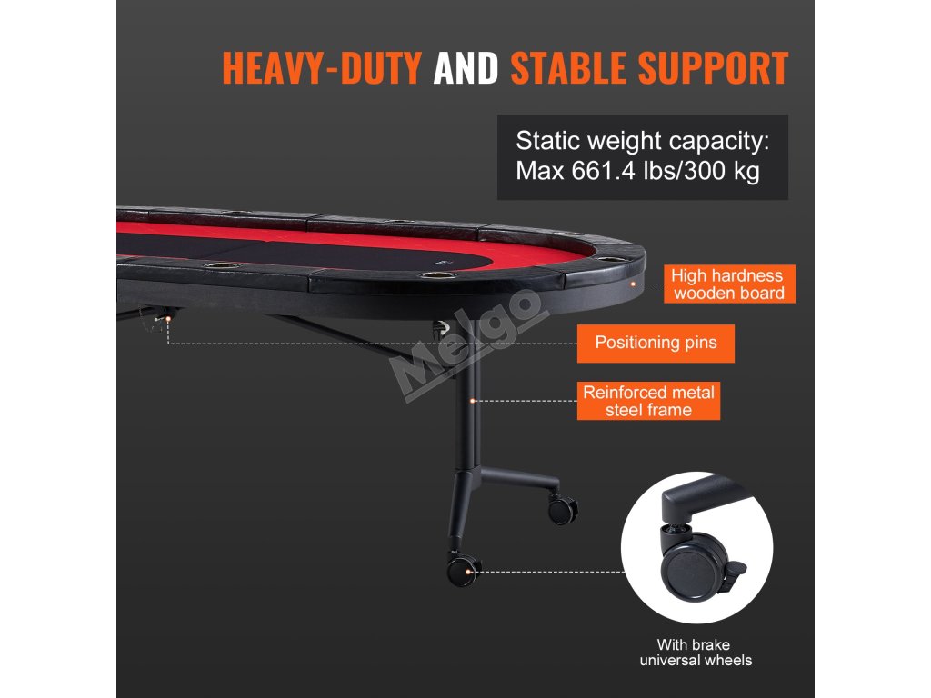 Nabízíme vám skládací, robustní pokerový stůl určený pro zábavu. Snadno se na něj vejde 10 hráčů najednou. Můžete si tak do sytosti užít hraní her, jako je Texas Hold'em a další karetní hry.
