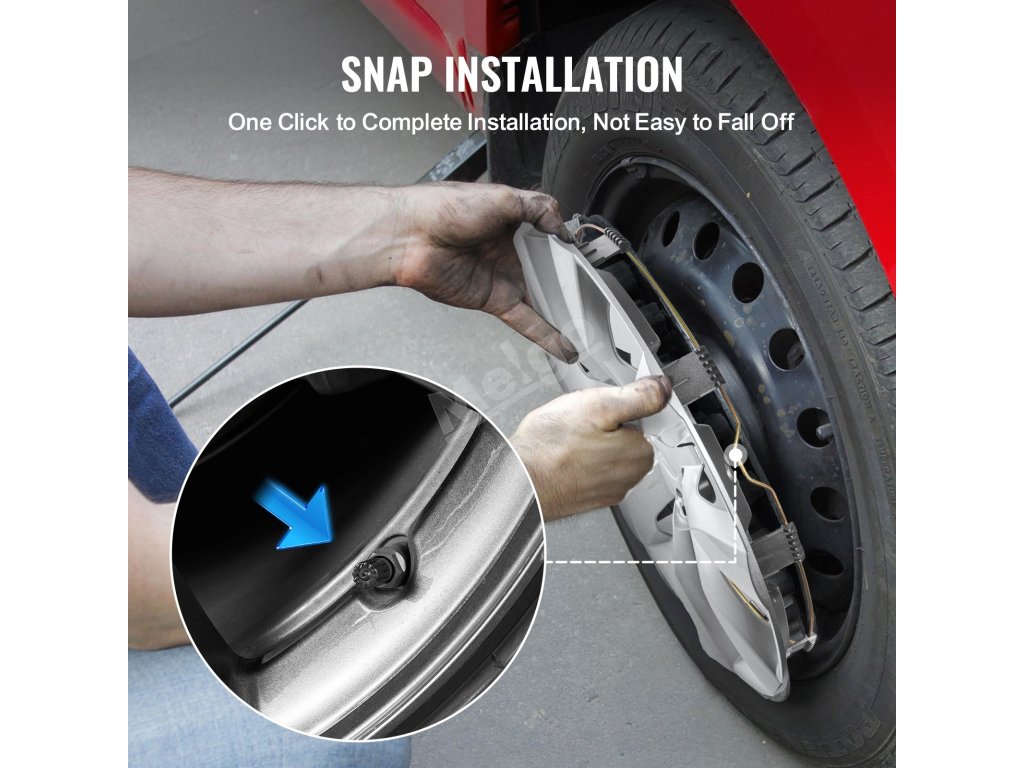 Instalace je snadná - stačí zarovnat a zatlačit! Díky klipovému provedení krytů ráfků kol jsou kryty kol bezpečné i na nerovných cestách.