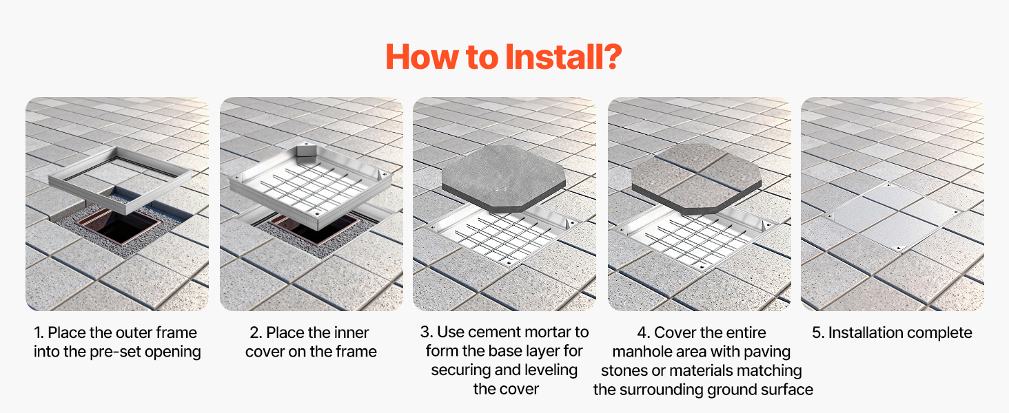 Podle několika jednoduchých kroků bezpečně nainstalujete poklop s rámem, který dokonale splyne s okolním povrchem.