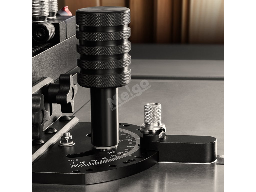 Náš pokosník pro stolní pily má ocelovou pokosovou tyč vybavenou nastavitelným pístem s boční kuličkovou pružinou. Pokud při umístění pokosového měřidla do drážky stolní pily zjistíte nějaké mezery, jednoduše pomocí přiloženého šestihranného klíče píst nastavte.