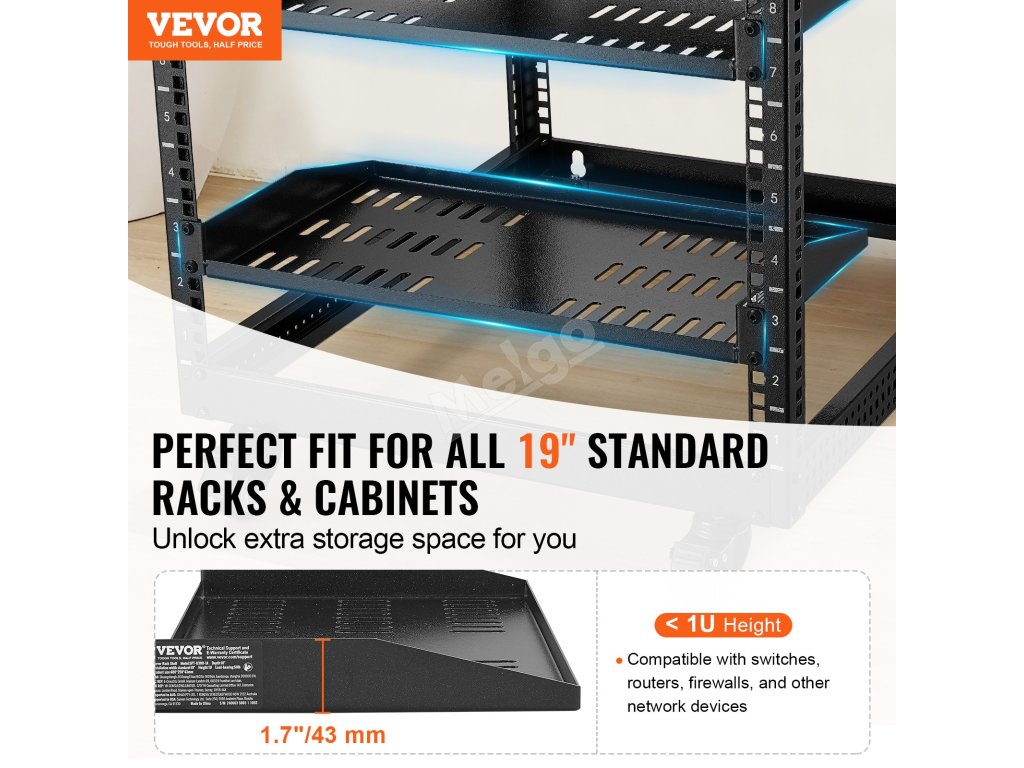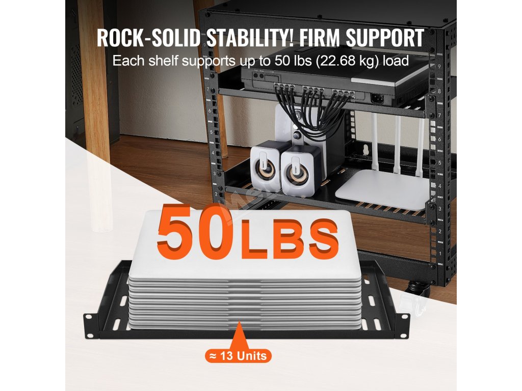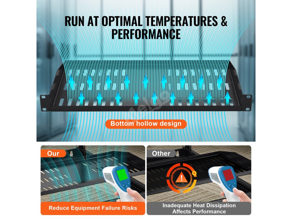 Vylepšete svůj pracovní prostor pomocí našeho serverového regálu, který nabízí spolehlivou podporu v každé kanceláři nebo datovém centru! Standardní výška 1U pro bezproblémovou integraci do jakéhokoli 19" serverového stojanu nebo skříně, pevná kovová konstrukce unese až 50 liber (22,68 kg) na polici.