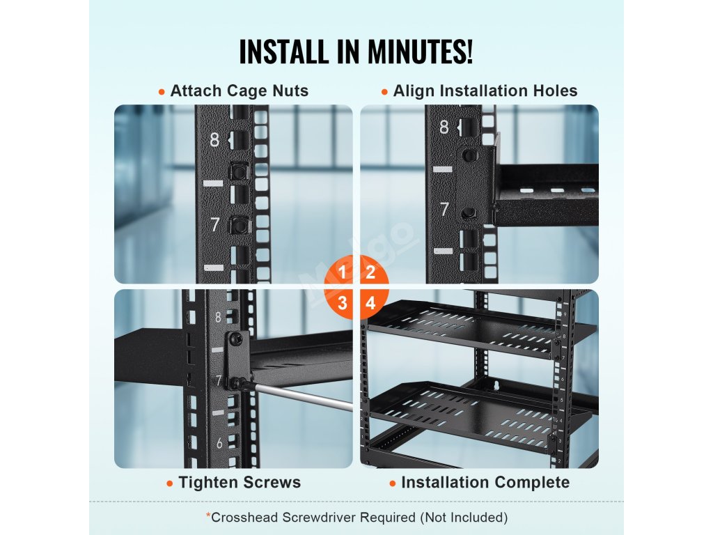 Ušetřete čas a námahu díky bezproblémovému nastavení. Kompatibilní se všemi 19" standardními stojany, stačí použít křížový šroubovák a vše je připraveno!