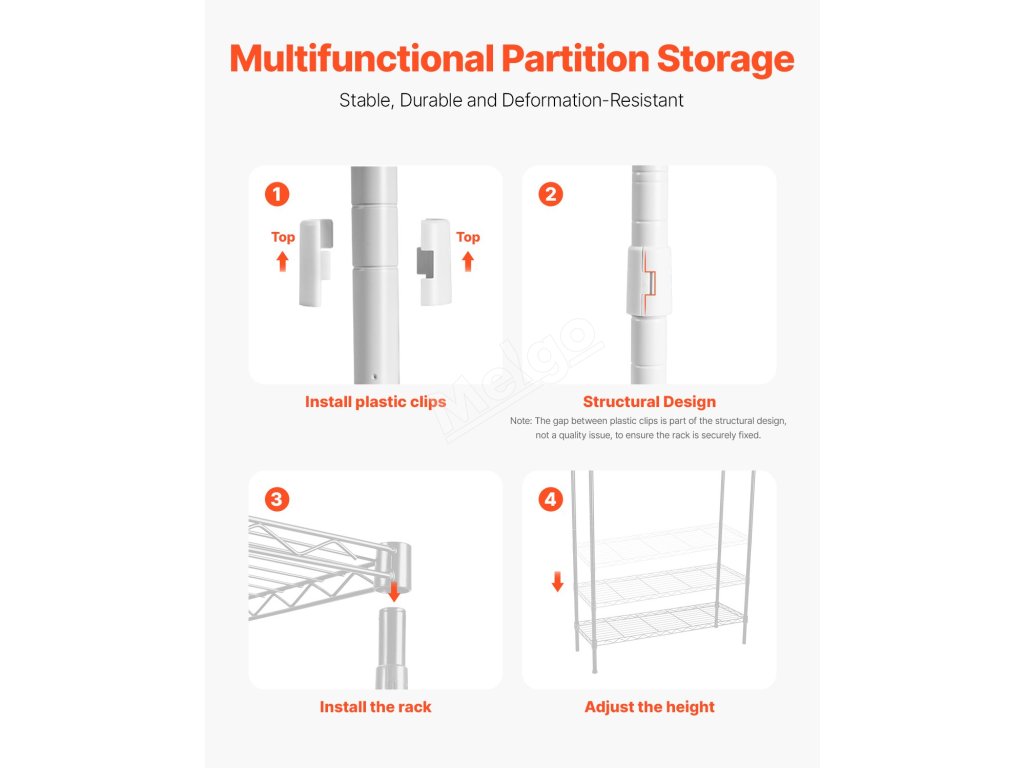 Kompaktní a odolný stojan na pračku a sušičku Tento stojan na pračku a sušičku s nastavitelnými policemi, tyčemi a háčky je vhodný pro většinu praček. Je vyroben z odolné uhlíkové oceli odolné proti korozi, unese až 330,7 lbs/150 kg a je vybaven zařízením proti převrácení a snadnou instalací.
