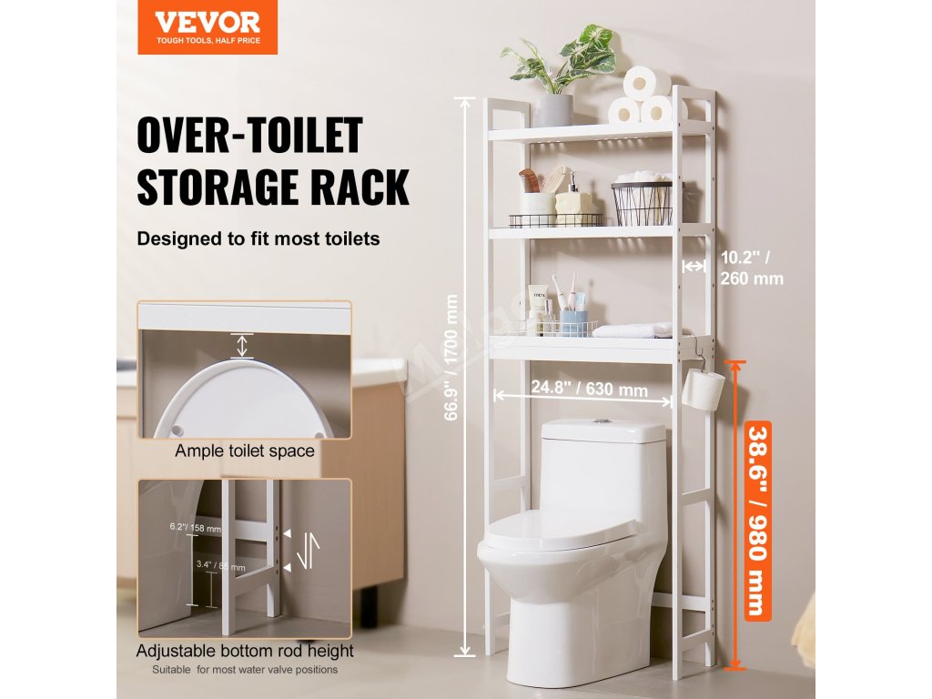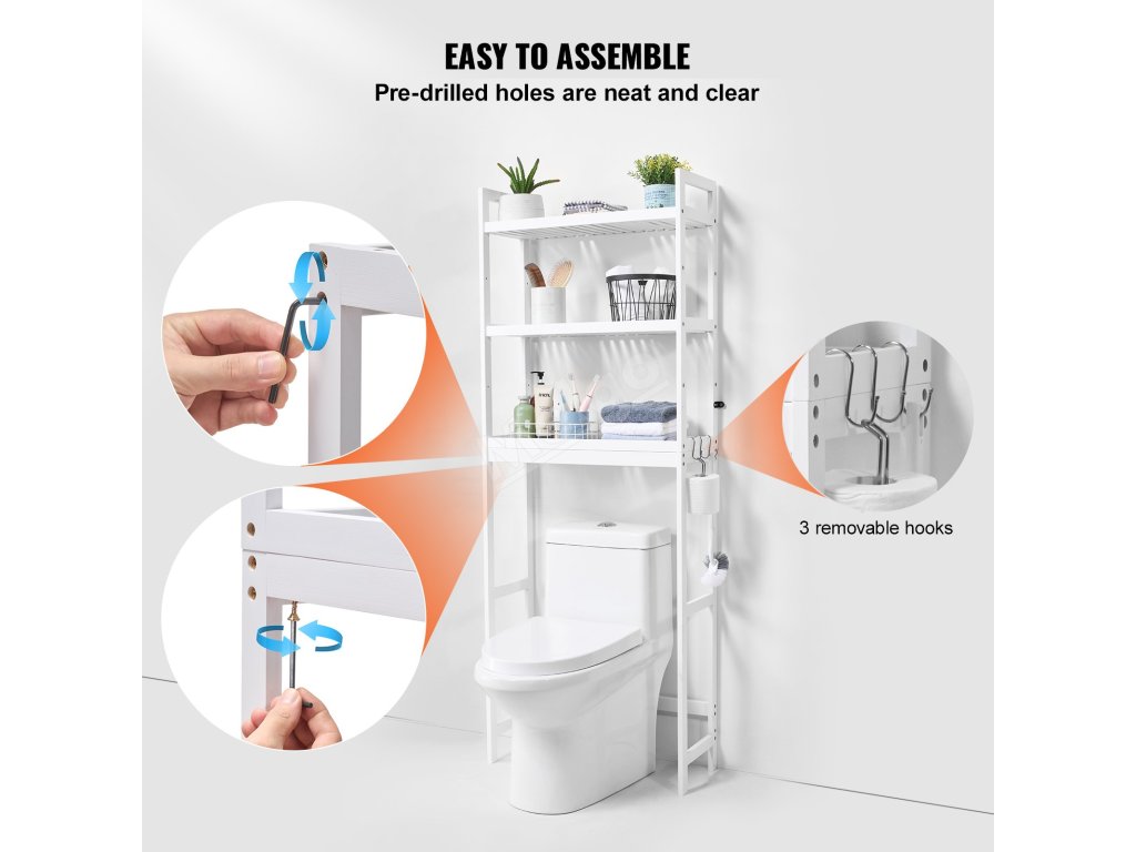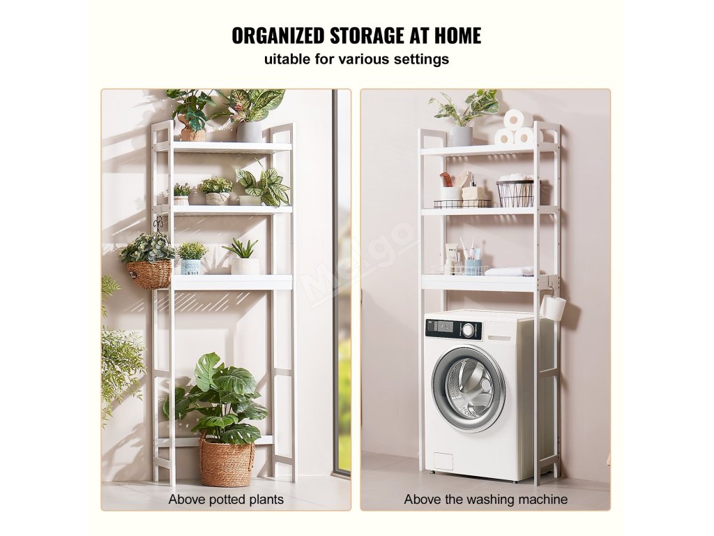 Tento organizér lze použít nejen nad toaletou, ale s naší úložnou policí můžete také maximálně využít vertikální prostor nad pračkami, květináči a úložnými boxy, což je vhodné pro koupelny, prádelny a balkony.