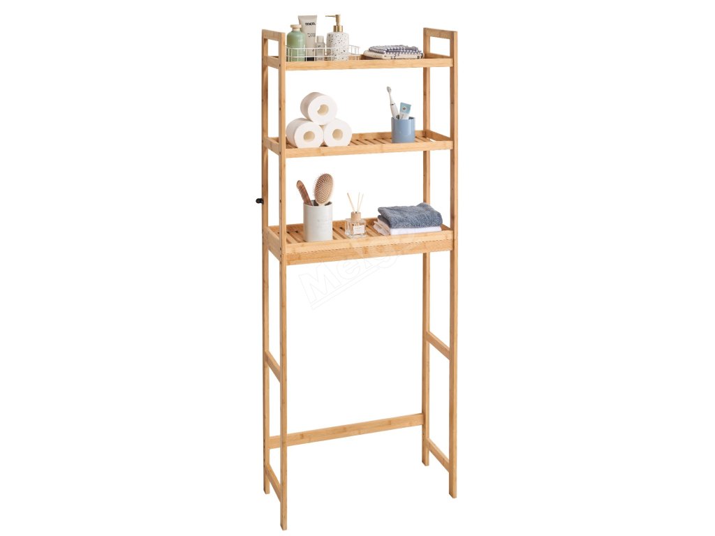 Police nad wc 3-patrová nastavitelná bambusová stojící se 3 háčky