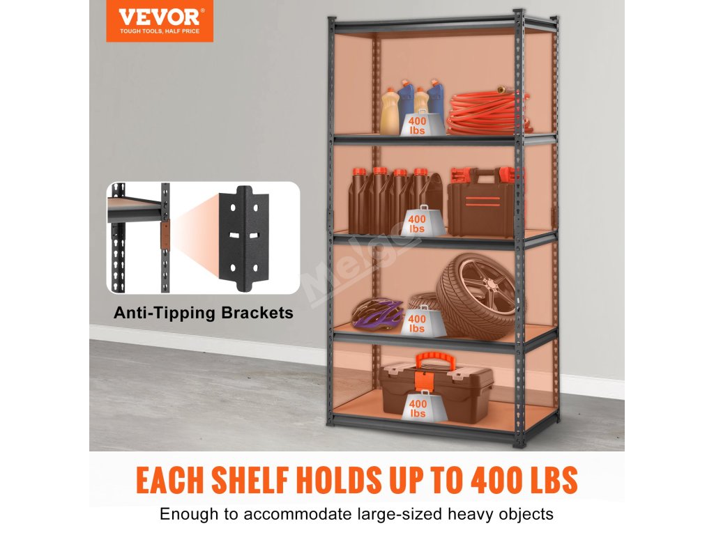 Policový regál, 5 polic, nastavitelný, nosnost 2000 lbs, 35"×18"×71"