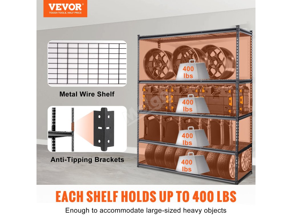 Rozveselte se! Každá těžká police je navržena tak, aby unesla až neuvěřitelných 400 kilogramů. Udržuje vše stabilní a bez kymácení. Navíc je vybavena výztuhami pro větší klid.