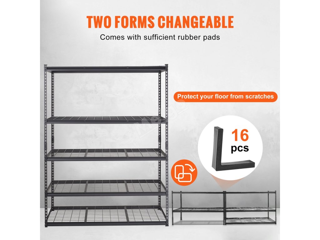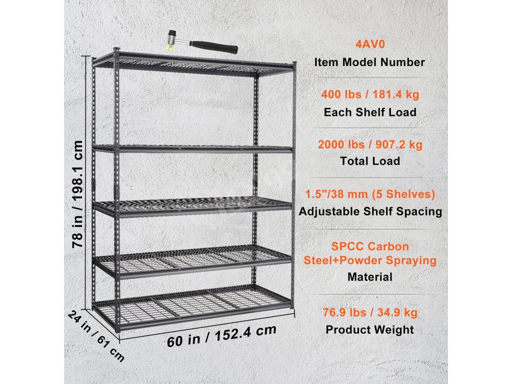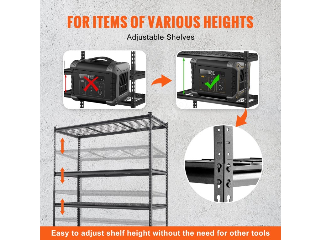 Policový regál 5 polic nastavitelný 2000 lbs černý 60"×24"×78"