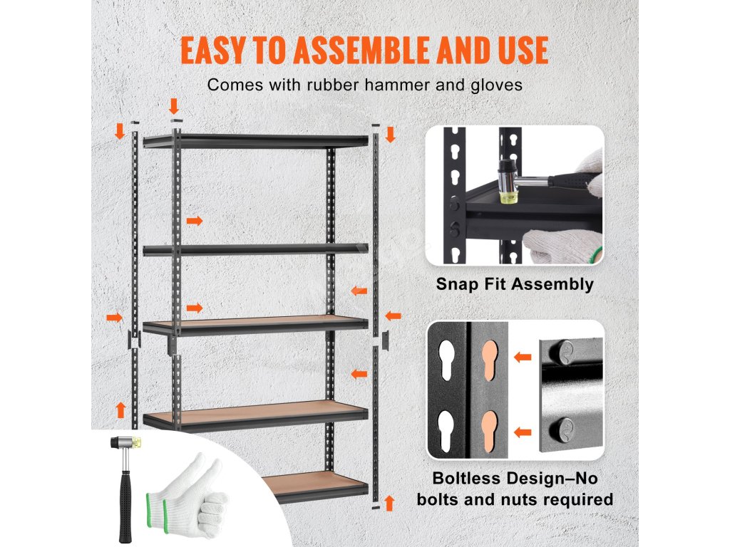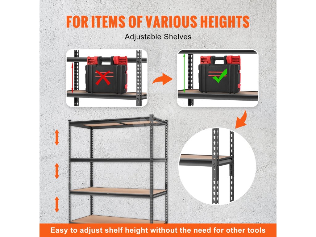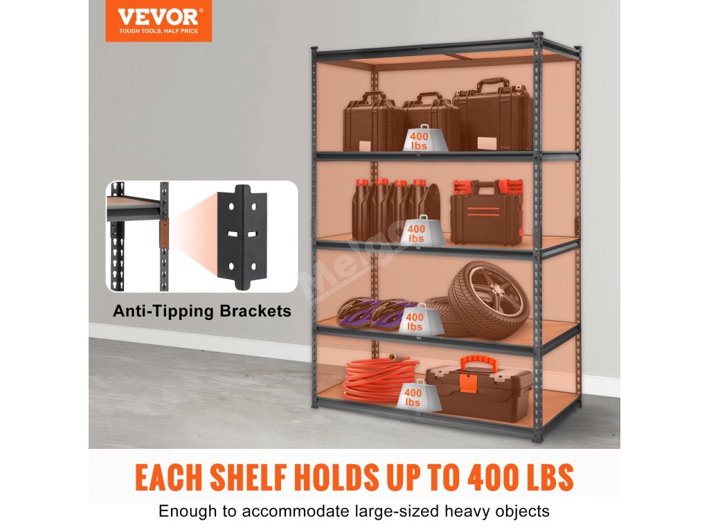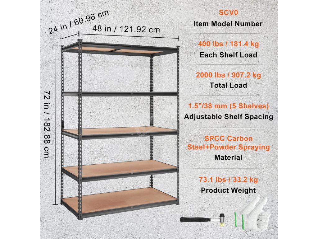 Policový regál 5 polic nastavitelný nosnost 2000 lbs 48"×24"×72"