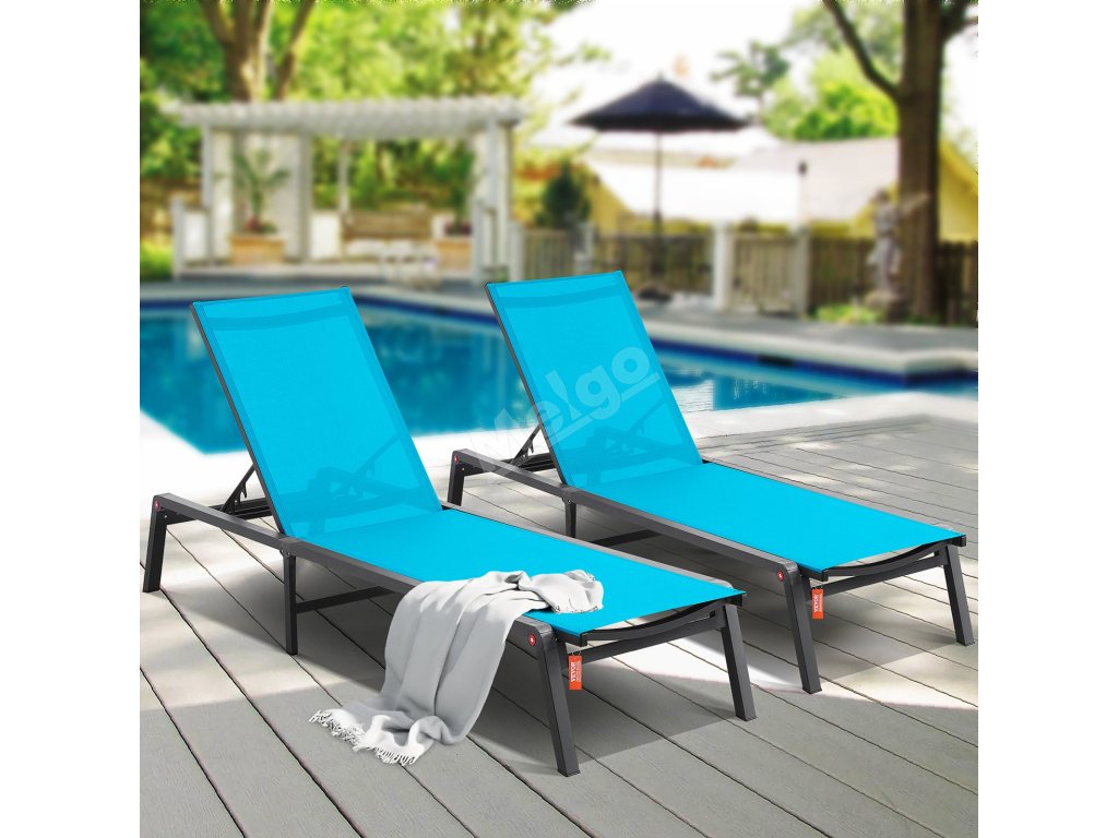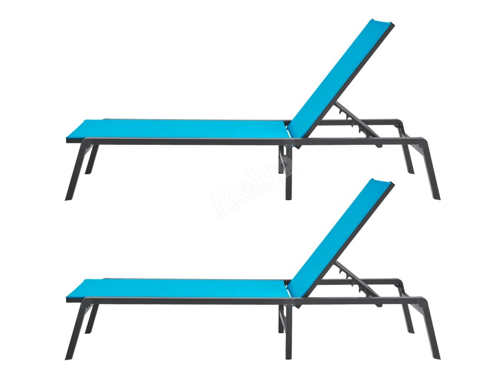 Polohovací hliníkové zahradní lehátko 5 poloh, sklápěcí, modré, 2 ks