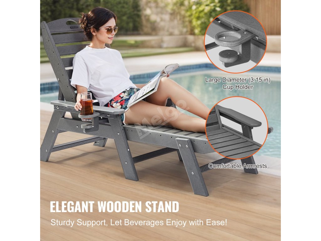 Užijte si široké područky a velký otočný držák na nápoje, který je ideální pro jakýkoli nápoj. Toto venkovní lehátko k bazénu je navrženo pro maximální pohodlí, takže se na vaší zahradě budete cítit jako na dovolené.