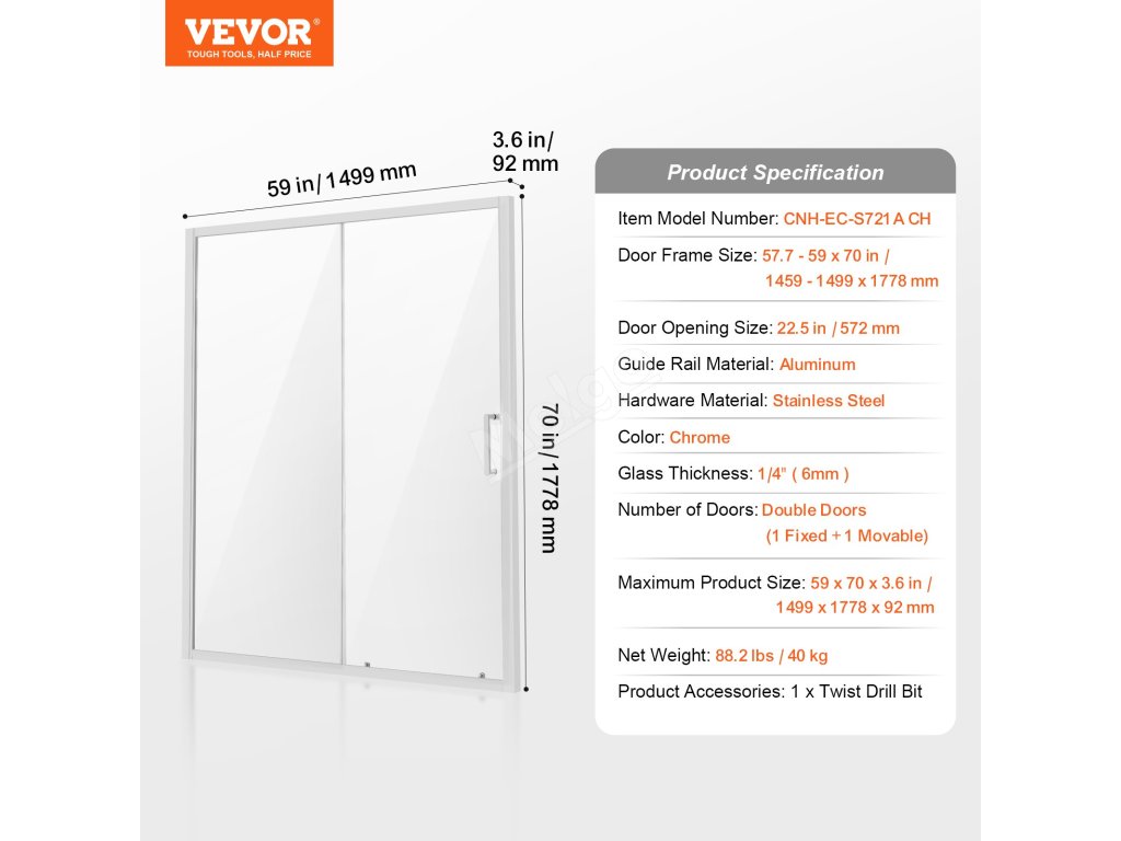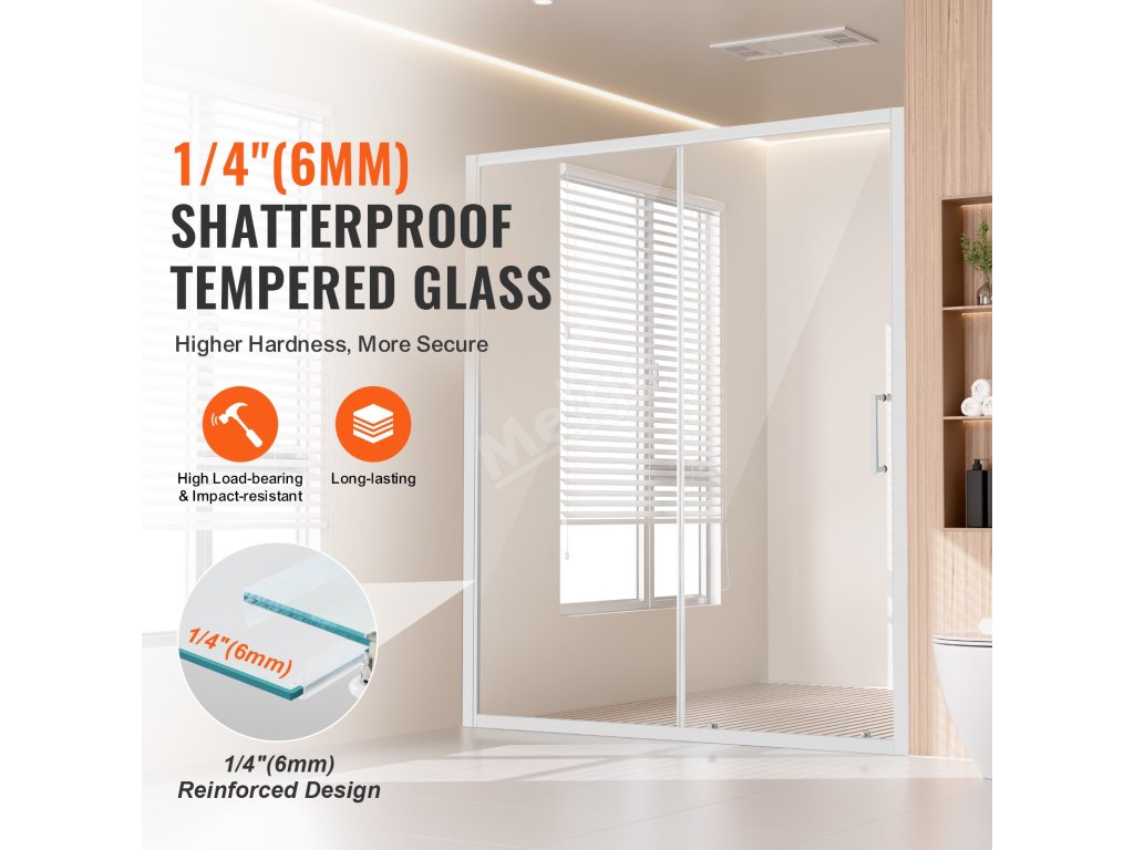Polorámové posuvné sprchové dvere 57.7-59"×70", 1/4"(6mm) kalené sklo