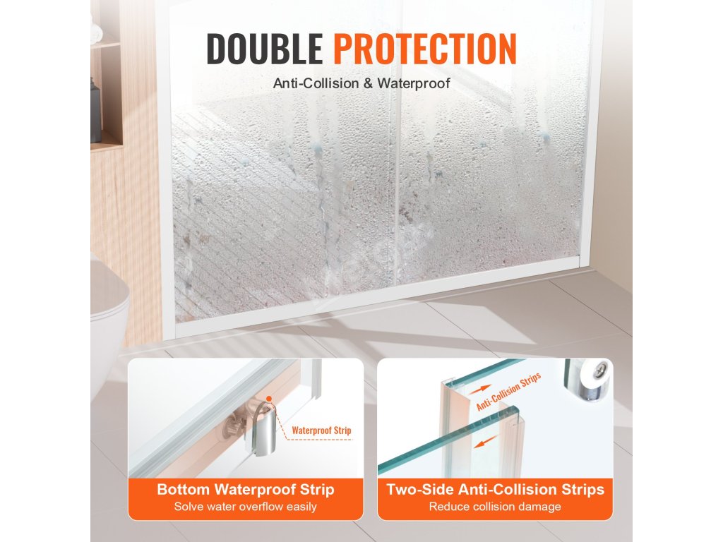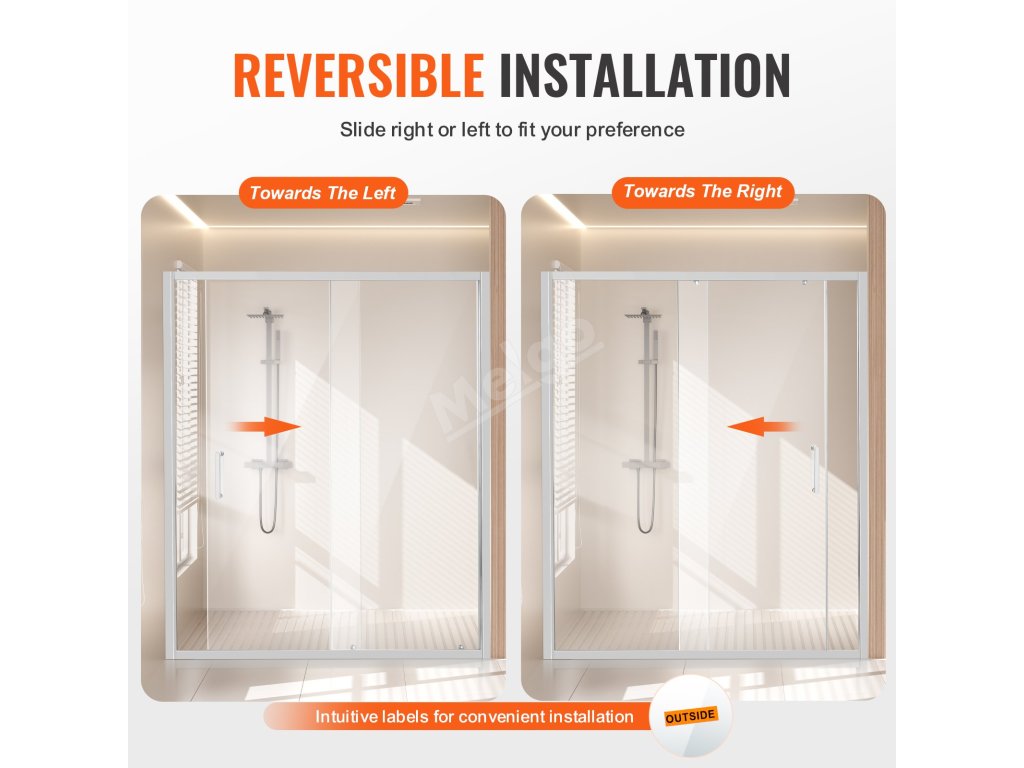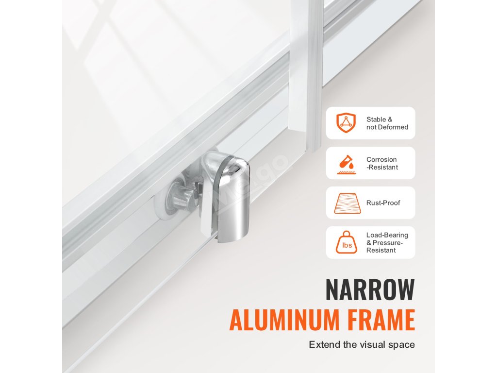 Tyto polorámové sprchové dveře používají tvrzené sklo o tloušťce 6 mm (1/4"), které je odolné proti korozi a trvanlivé. Úzký hliníkový rám rozšiřuje výhled. Oboustranná instalace umožňuje instalaci vpravo nebo vlevo podle vašich preferencí, což vám zajistí pohodlné sprchování!