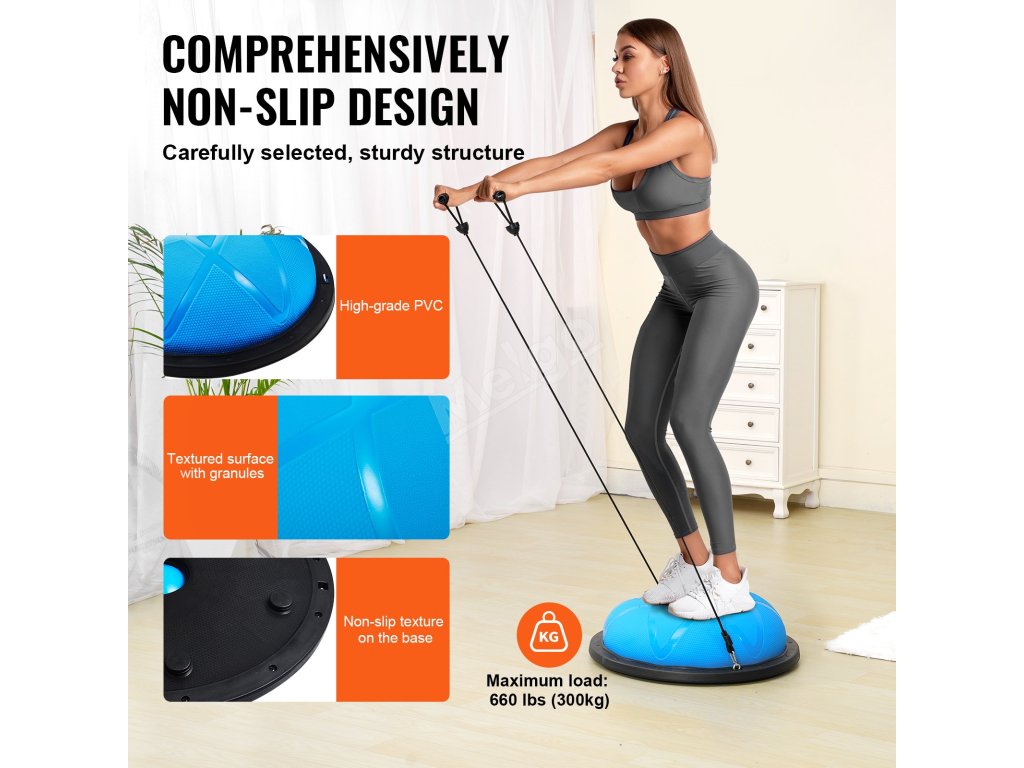 Poloviční cvičební míč s pásy a pumpou, 23 inch, nosnost 660 lbs