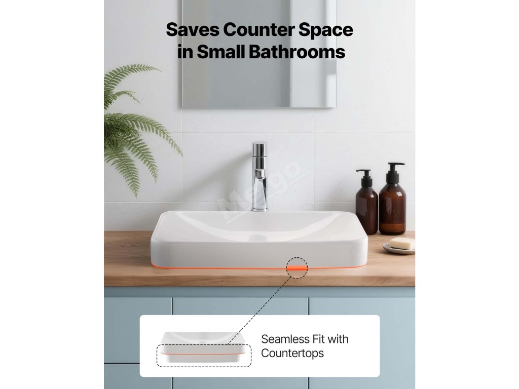 Koupelnové umyvadlo s polozapuštěnou deskou se bez problémů instaluje do desky, což podtrhuje praktický, moderní styl a zároveň maximalizuje využitelný prostor vaší koupelny. Vhodné pro malé dispozice a moderní domácnosti.
