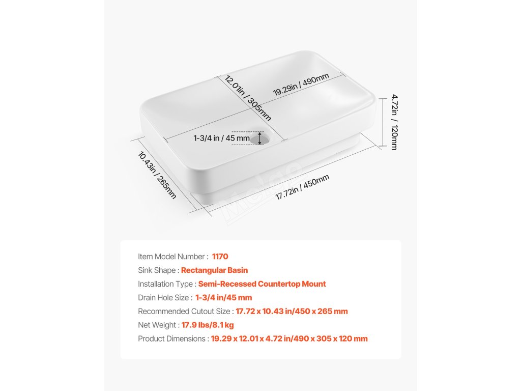 Toto zapuštěné koupelnové umyvadlo vyžaduje přesné výřezy pro desku před jejím nastavením. Doporučujeme použít odborné měření a řezání podle skutečných rozměrů umyvadla. Ujistěte se, že jsou okraje bezpečně utěsněny, aby nedošlo k poškození způsobenému prosakováním vody.
