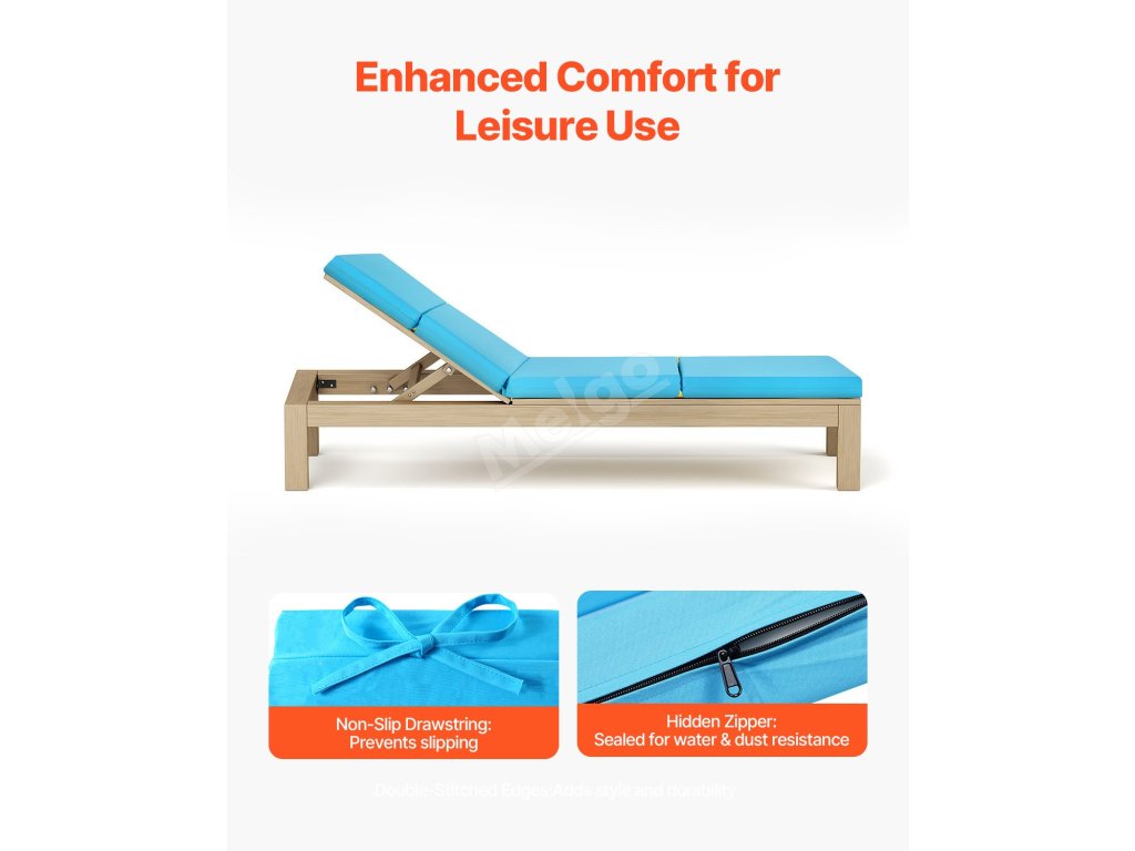 Tento polštářek na venkovní lehátko má univerzální velikost, která je vhodná pro většinu lehátek, a nabízí oporu celého těla a pohodlí na terasách, zahradách. Mezi promyšlené detaily patří nastavitelné ramenní popruhy, protiskluzové úchyty a skrytý zip pro snadné přenášení a bezpečné umístění.