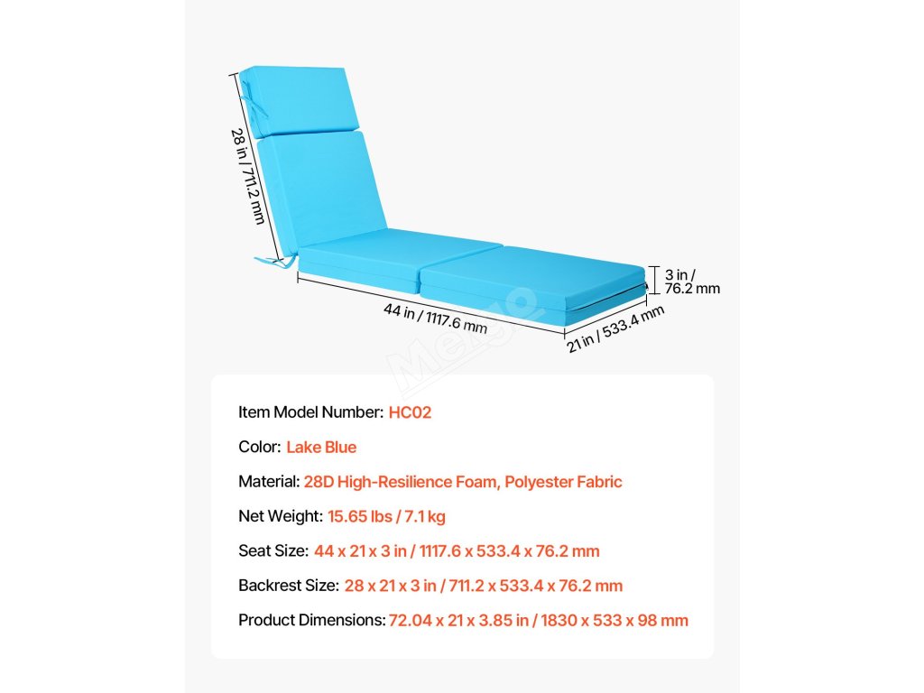 | Velikost sedáku | 44 x 21 x 3 palce / 1117,6 x 533,4 x 76,2 mm |