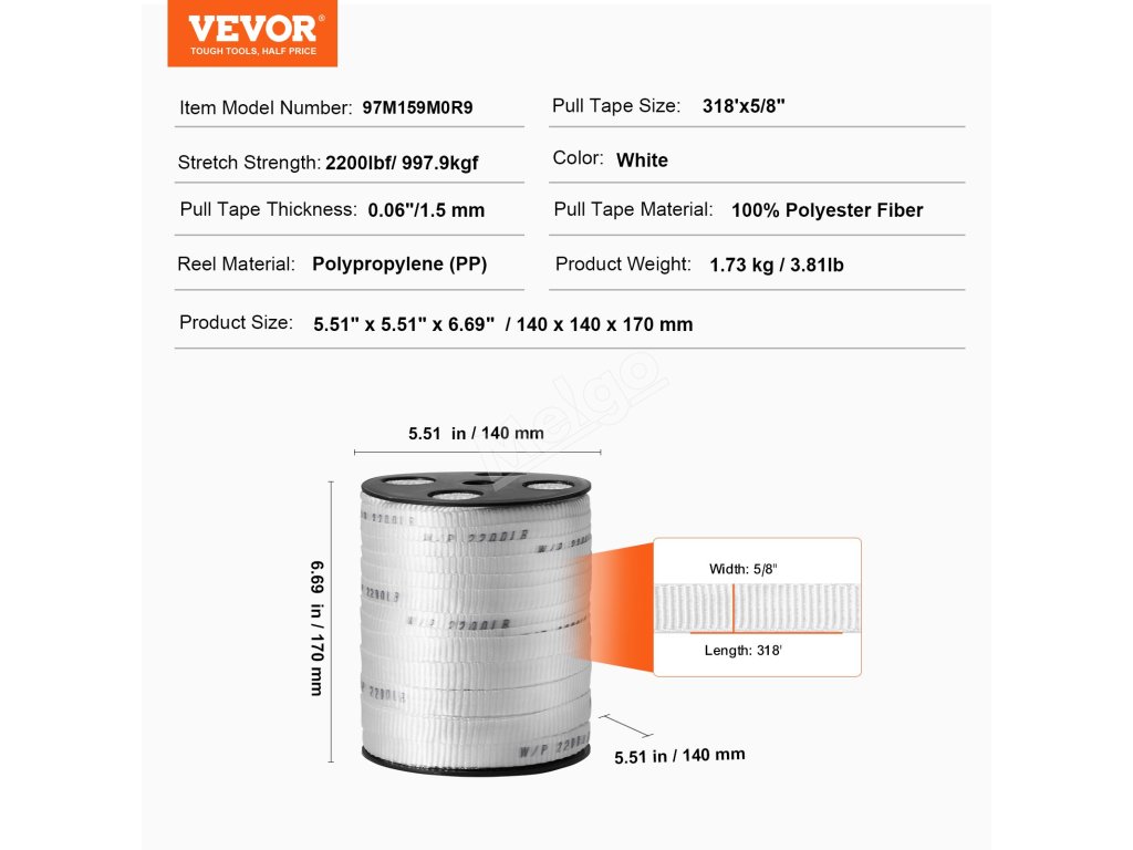 Plochá páska VEVOR z průmyslového polypropylenu (PP) zaručuje stabilitu a spolehlivost i při vysokých rychlostech. Její hladké vytažení v kombinaci s objímkou zaručuje špičkový výkon, který je ideální pro naléhavé situace při vedení kabelů.