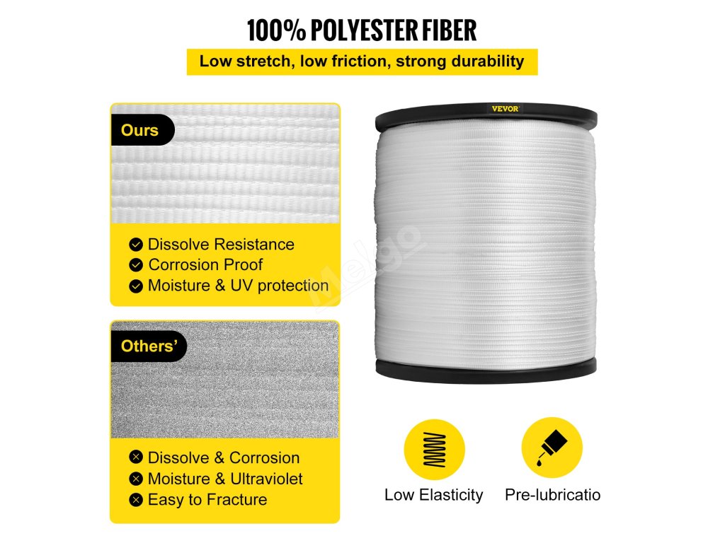 Tahová páska je vyrobena ze 100% polyesterového vlákna, které je odolné vůči kyselinám a rozpouštění. Kromě toho má polyesterové vlákno silnou odolnost proti mikrobům a korozi, kterou neovlivňují moli a plísně.