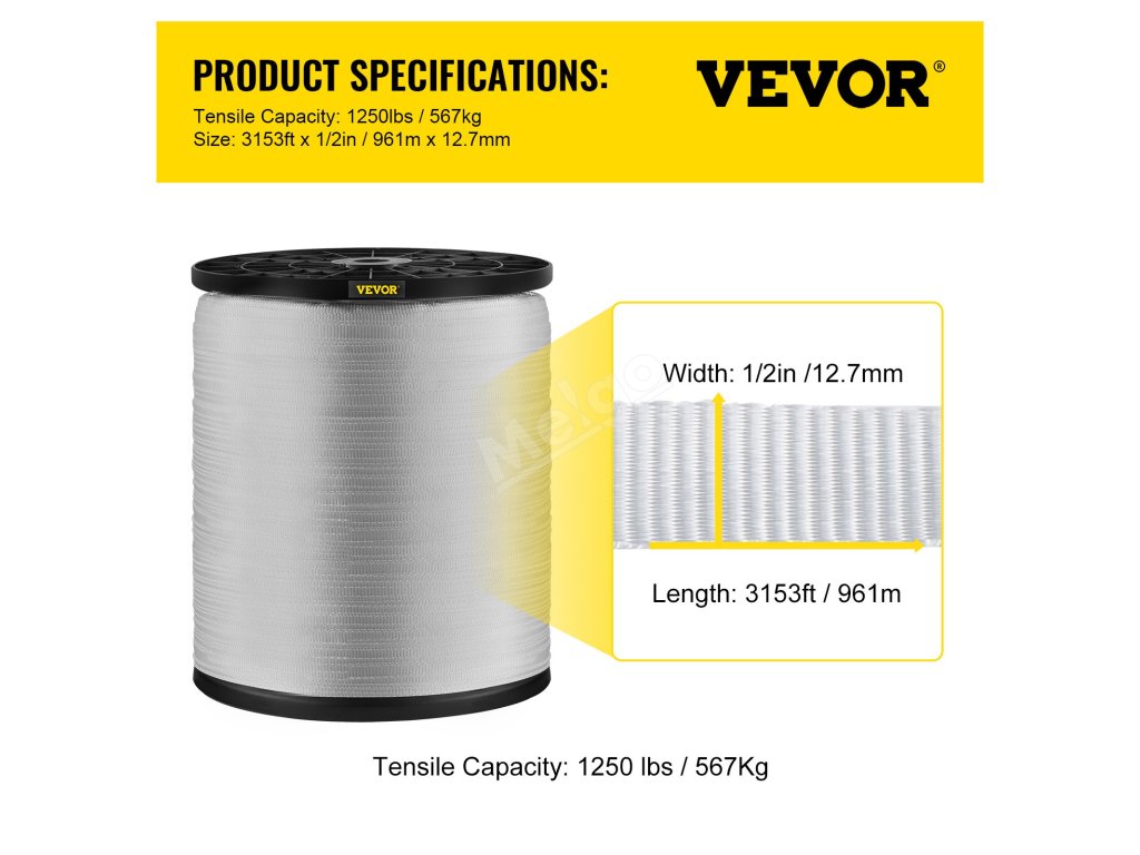 Polyesterové ploché tahací pásmo 1250lbs 3153'×1/2" pro kabely