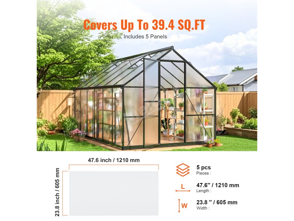 Polykarbonátové střešní desky do skleníku 5 ks 2'×4'×0.32'' vlnité uv