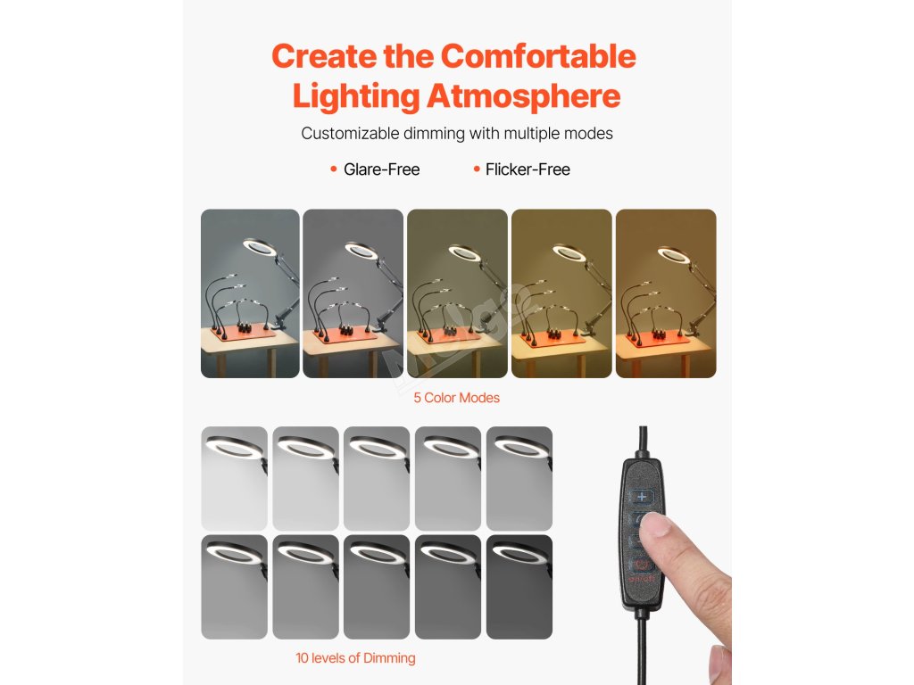 Tato magnetická ruční pájecí stanice nabízí 5 barevných teplot a 10 úrovní jasu, které odpovídají různým prostředím a požadavkům na úkoly. Měkké světlo bez blikání snižuje oslnění a únavu očí, takže práce je pohodlnější a efektivnější.