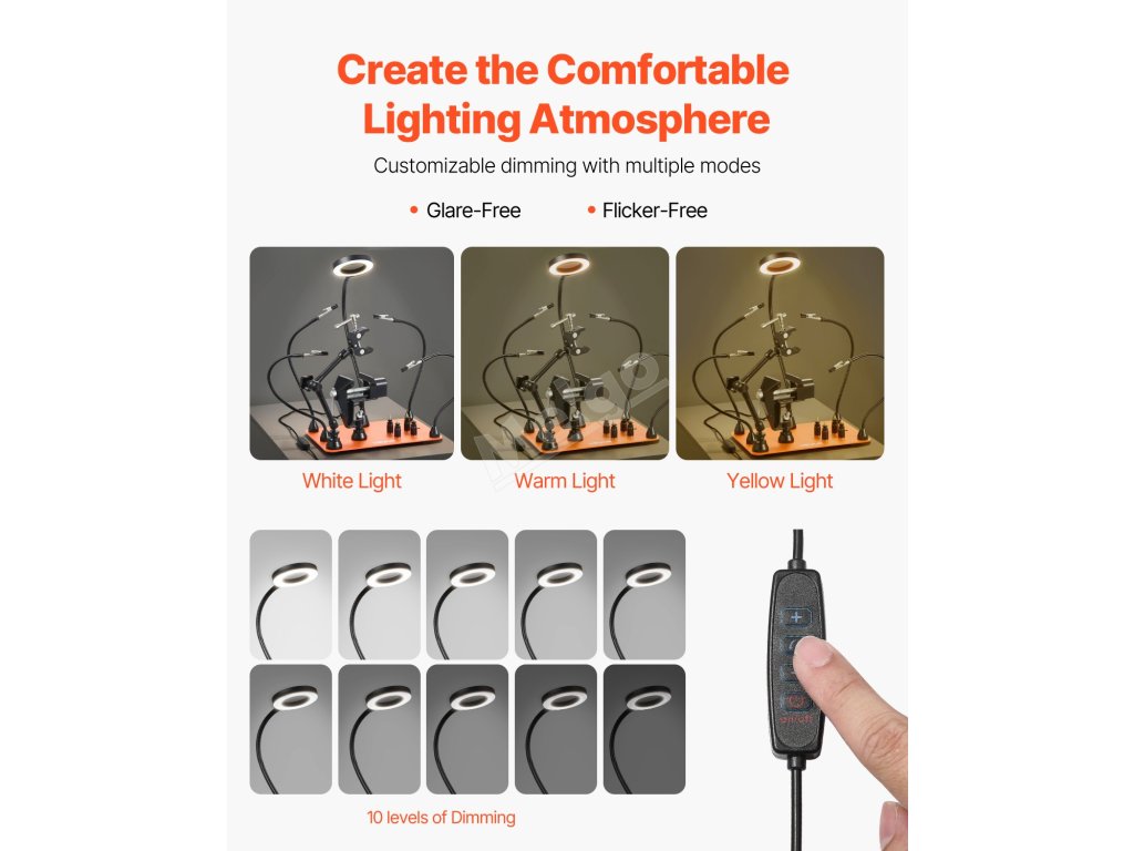 Tato magnetická ruční pájecí stanice nabízí 3 teploty barev a 10 úrovní jasu, které odpovídají různým prostředím a požadavkům na úkoly. Měkké světlo bez blikání snižuje oslnění a únavu očí, takže práce je pohodlnější a efektivnější.