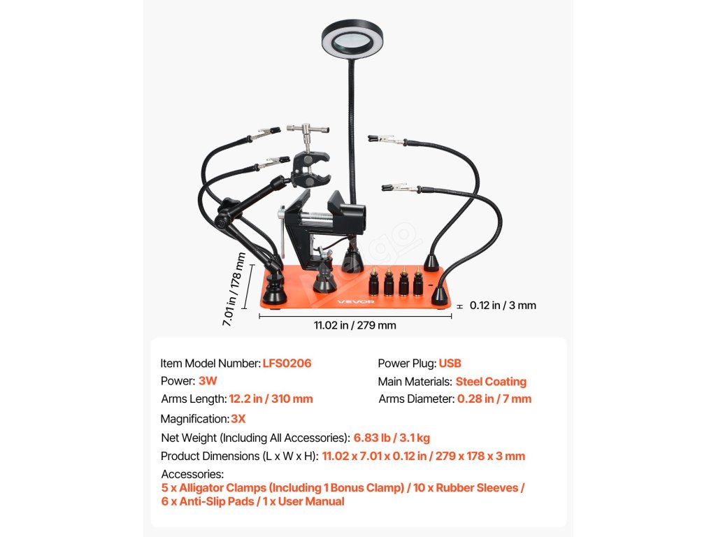 Naše magnetické pomocné ruce jsou ideální pro elektroniku, pájení, čtení, osvětlení, údržbu a také pro kutilské projekty, jako je zdobení nehtů, šití, malování a další přesné úkoly.