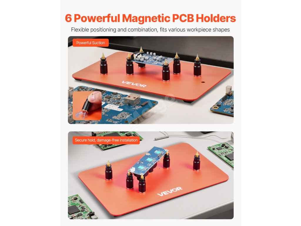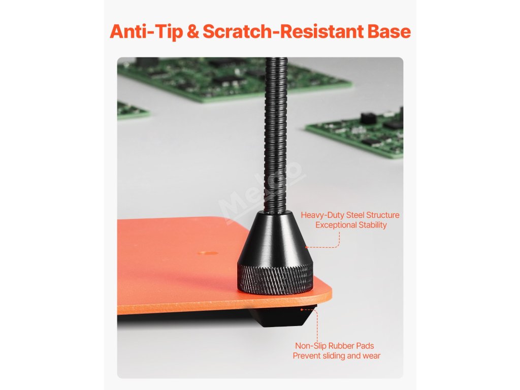 Tento nástroj pro třetí ruku je vybaven protiskluzovými gumovými podložkami, které zajišťují vysoké tření, účinně zabraňují sklouzávání zařízení a zajišťují stabilitu při používání. Měkký gumový materiál odolný proti opotřebení také zabraňuje poškrábání a poškození pracovního povrchu.